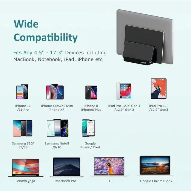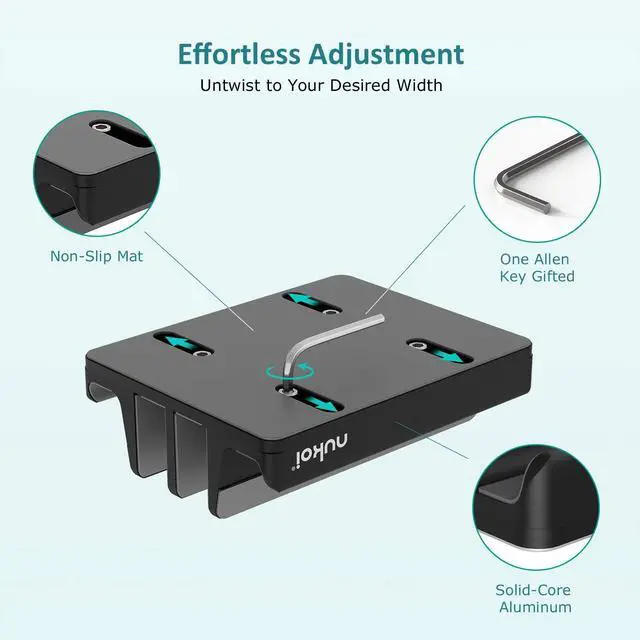 2 central main docks easily adjust using the included Allen wrench key, creating an ideal fit for any laptop and tablet that’s 0.6" to 1.6” thick, which is every laptop & tablet.