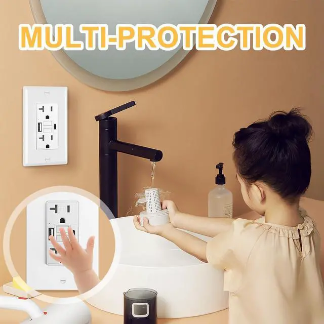 20 Amp GFCI Outlet with USB-C & USB-A USB Ports, with 2 charge cables