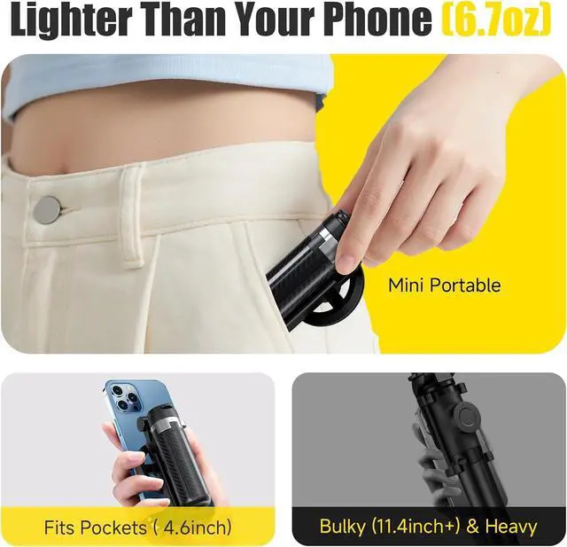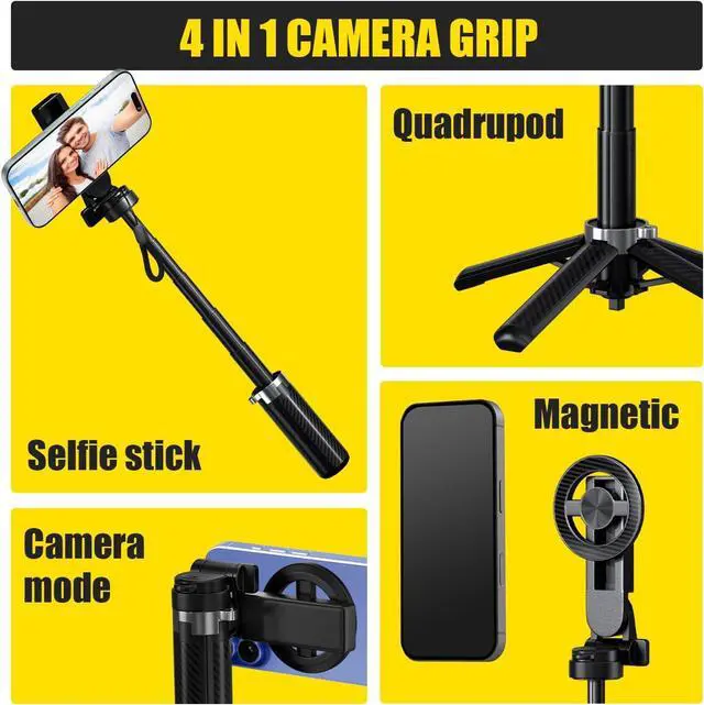 ALL-IN-ONE VERSATILITY : Combines selfie stick, tripod, Bluetooth remote, and magnetic mount into one sleek toolideal for vlogs, selfies, Zoom calls, and social media reels.
