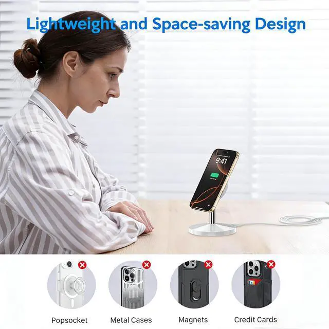 Note:If the phone case is too thick or there is no MagSafe case,it may cause the wireless charger to fail to attract the phone and thus prevent charging.