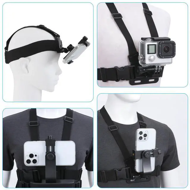 Mobile Phone Chest Strap Harness Mount Head Strap Holder Kit for POV/VLOG, Cell Phone Clip Compatible with iPhone, Samsung, GoPro Hero 12, 11, 10, 9, 8, AKASO, DJI Osmo, and Action Cameras
