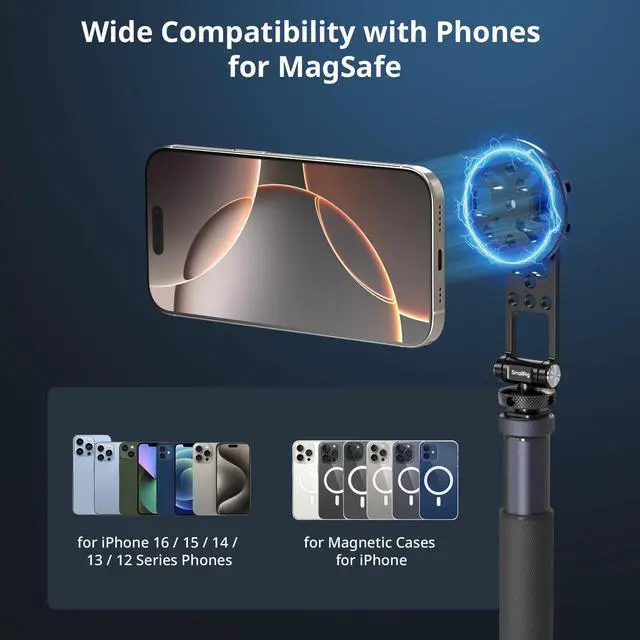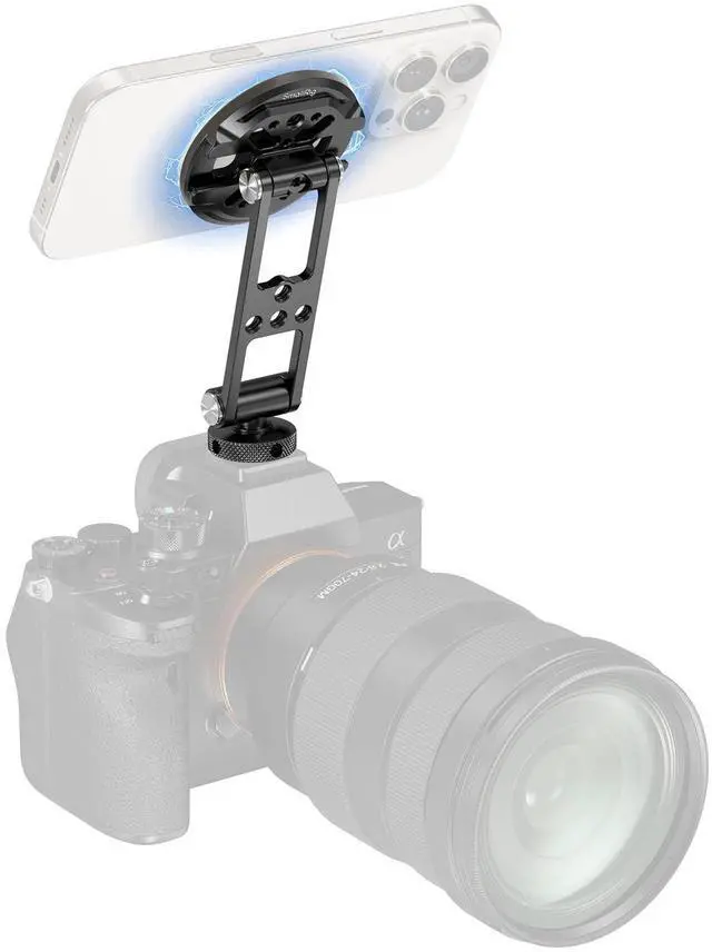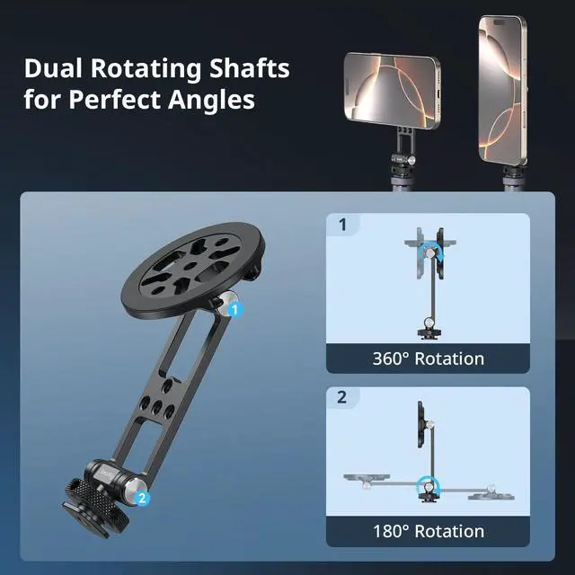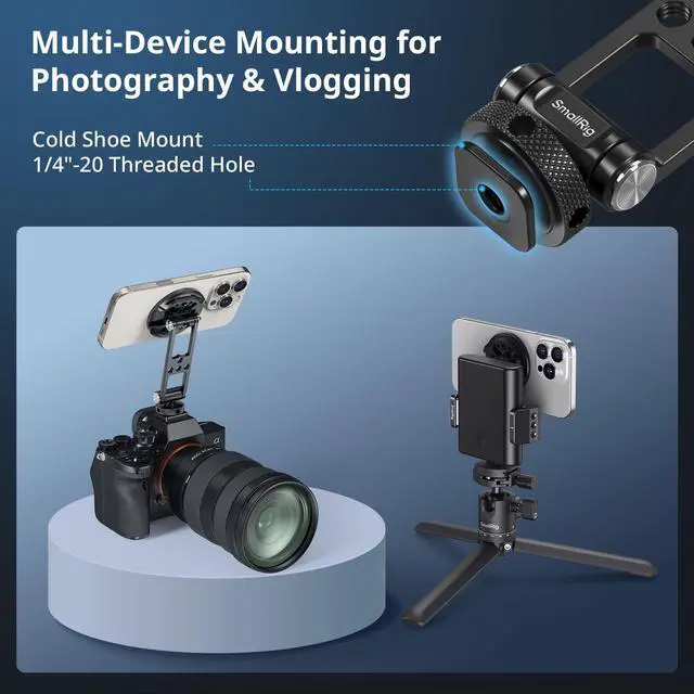 | w 1/4"-20 Hole&Cold Shoe Mount | Wide Compatibility | Instant Orientation Switching | One-touch Quick Lock Design | One-touch Quick Lock Design | Quick Mount for MagSafe | Universal Phone Holder |