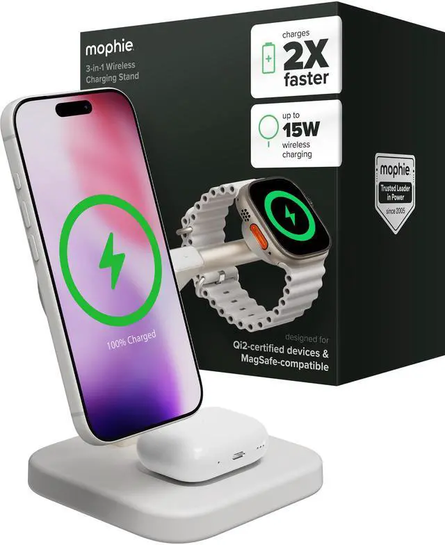 CABLE MANAGEMENT & WARRANTY: Keep your space neat with an integrated cable that coils neatly into the base. Compact and elegant, this phone charger includes a 2-year Mophie warranty for peace of mind