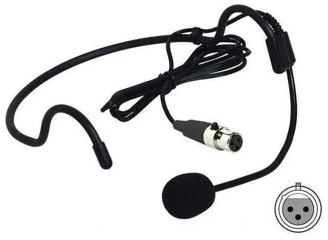 Generic Headworn Headset Microphone for AKG/Samson Wireless Bodypack Transmitters, with Windscreen, Mini 3 Pins XLR Connector, Unidirectional, Black