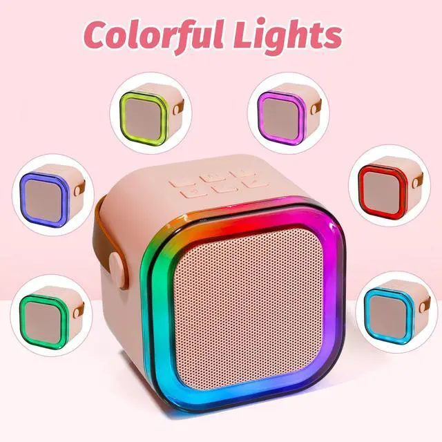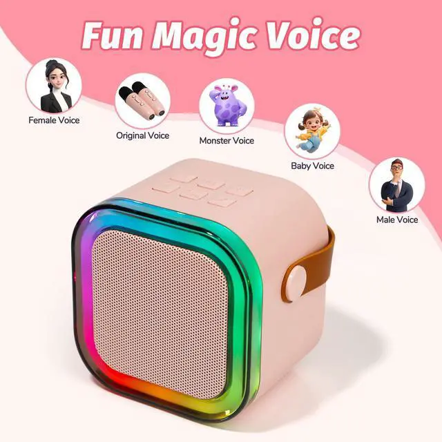 Mini Karaoke Speaker with 2 Wireless Microphones,Voice Effects,Led Lights, Portable Singing Machine for Ages 3,4,5,6,7,8,9,10,11,12+ Years Old Girl Birthday Gift, Kids Karaoke Machine (Pink)