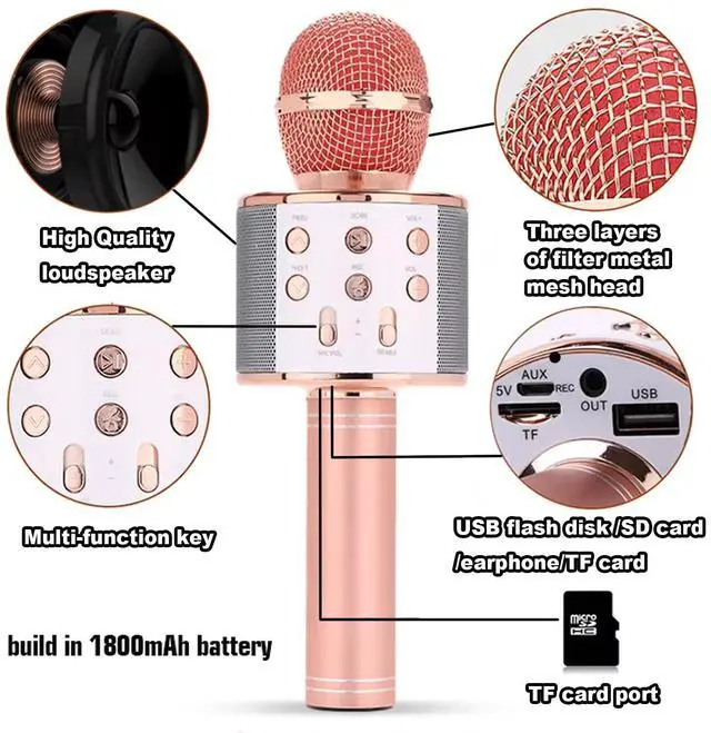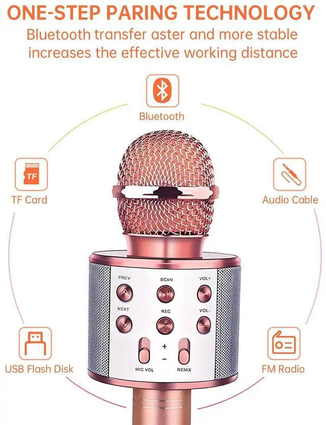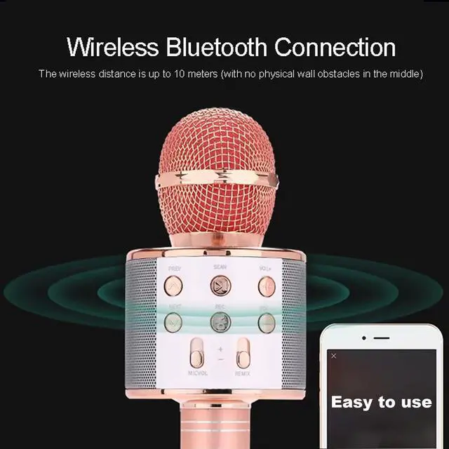 Wireless Bluetooth Karaoke Microphone Portable Handheld Mic Speaker 3-in-1 for All Smartphones Gifts