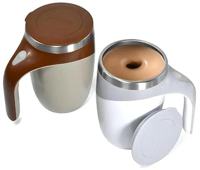 Introducing our refined 14oz Self-Stirring Coffee Mug with Lid, a pinnacle of convenience and modern design, catering to those who appreciate the blend of technology and functionality in their daily coffee ritual. This automatic stirring mug is specifically engineered for those who find joy in seamless coffee preparation, providing an unparalleled experience in every sip. Crafted with precision, this coffee mug features an automatic stirrer that effortlessly creates a uniform mix in your beverages, whether it's your morning coffee or afternoon tea. The self-stirring mechanism is activated with a gentle press, ensuring your drink is blended without the need for a separate coffee stirrer. This feature makes it an ideal travel coffee mug, as it eliminates the hassle of carrying additional tea accessories or mixing cups. Designed to help retain beverage warmth when used with the lid insulated coffee mug ensures your beverage remains at the optimal temperature, allowing you to enjoy your coffee at your own pace. The mug's robust construction and airtight lid make it a reliable companion for on-the-go use, transforming it into a travel coffee cup that is both practical and stylish. Whether you're commuting or working from home, this coffee mug with lid ensures no spills and retains the freshness and warmth of your drink. Beyond its practical features, this stirring coffee mug also serves as a gift option. Surprise a coffee enthusiast with this great gift for coffee lovers coffee mug, for custom gifts for women who value functionality and elegance in their coffee accessories. The sleek design and reliable functionality of this insulated coffee cup make it a thoughtful addition to any kitchen or office setup. The 14oz capacity of our self-stirring mug is ideal for those who prefer a large coffee mug, offering ample space for your favorite hot beverages. This mug, with its automatic stirring capability, stands out among traditional coffee cups, providing a unique experience that combines convenience and enjoyment. Incorporating this automatic stirring coffee cup into your routine means embracing a future where your coffee is mixed, every time. Its not just a coffee cup that stirs itself; its a statement of modern convenience and style. Whether you're looking for a reliable travel mug or a distinctive tea mug with lid, our self-stirring coffee cup promises to enhance your daily beverage ritual with unparalleled ease and sophistication.