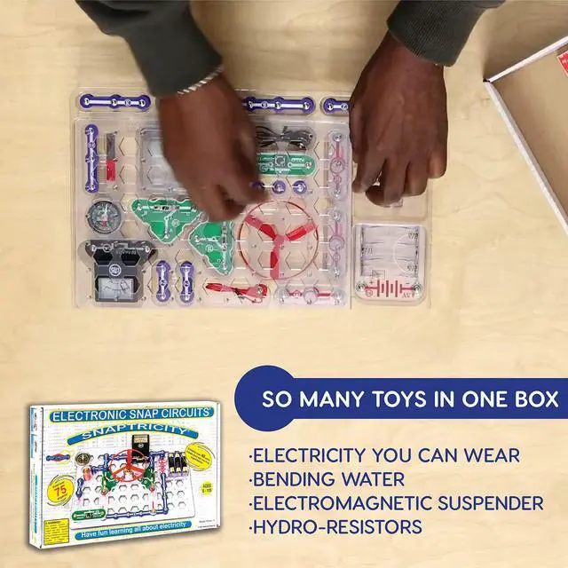 All Snap Circuits kits come with everything you need (batteries excluded) to complete real electronic circuits. Components combine to create working circuit boards just like the ones found inside televisions, radios, and other electronic devices.