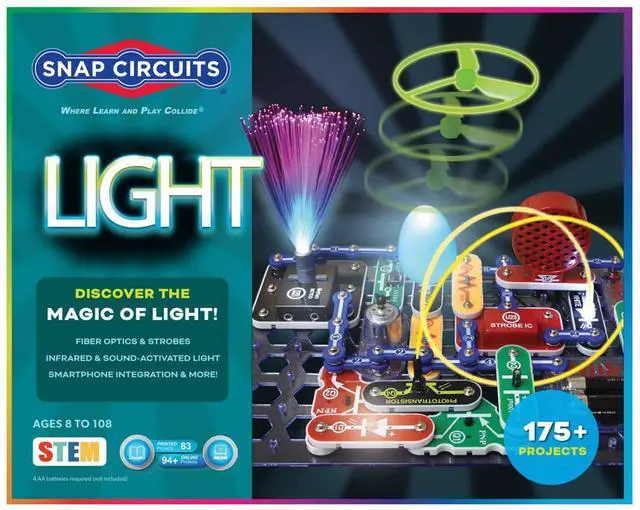 All Snap Circuits kits come with everything you need (batteries excluded) to complete real electronic circuits. Components combine to create working circuit boards just like the ones found inside televisions, radios, and other electronic devices.