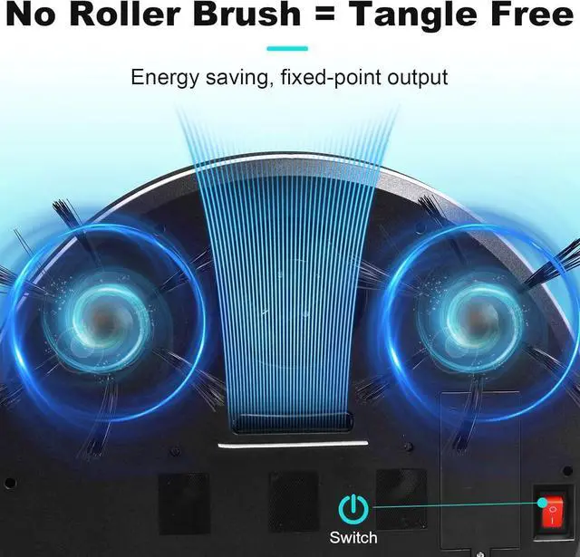 ROBOT VACUUM CLEANER: Smart Cleaning, Robot Vacuum Cleaner Removes Dust QuicklyThe sweeper is equipped with dual side brushes that provide powerful suction to effectively remove dust, pet hair and debris from hard floors. The brushless nozzle prevents hair from getting tangled, perfect for families with pets.