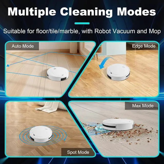 3-in-1 Sweeping and Mopping Robot: app use to set up a sweep schedule, adjust suction, sweep path, and switch between four sweep modes: auto sweep, spot sweep, edge sweep, and sawtooth sweep. This automatic sweeper allows the user to start and stop sweeping by...
