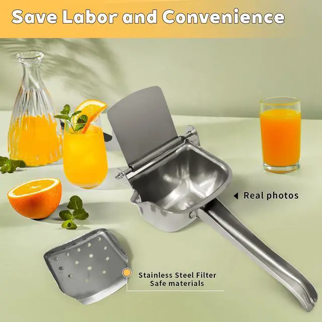 Stainless Steel Manual Juicer, Orange Juice Squeezer, Lemon Squeezer Stainless Steel, Orange Juice Squeezer, Fruit Juicer for Watermelon Lemon Orange Grapes and Other Fruit