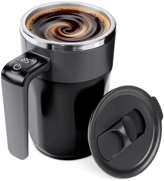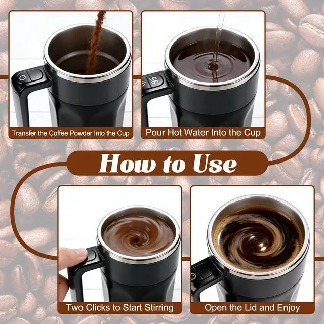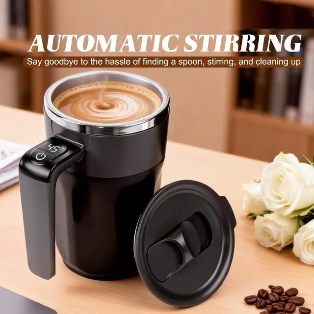 SELF STIRRING COFFEE MUG: Simply double-click the button on the handle to blend coffee, protein powder, or oatmeal to a perfectly smooth texture in seconds, easily removing lumps and saving you the time and wrist strain of manual stirring.