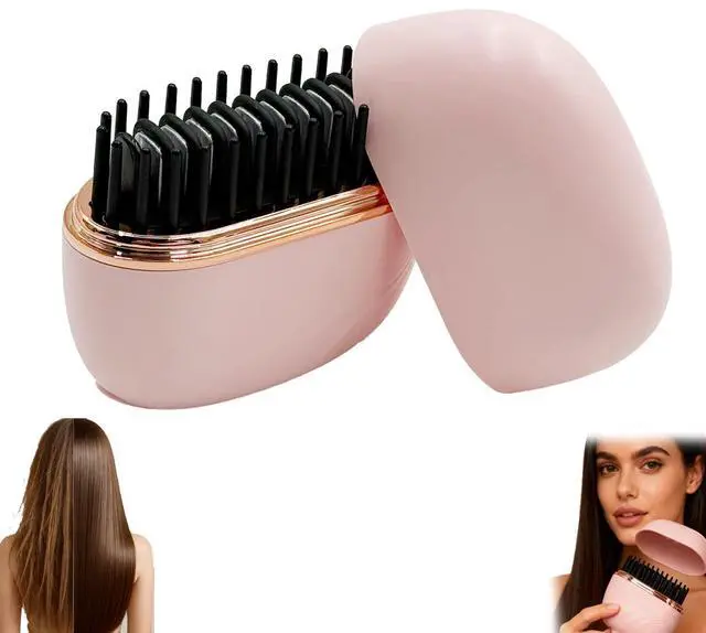 Glam brushs Mini Hair Straightener,3-Speed Temperature Control, Portable Electric Hair Straightener Brush 30s Heating,Rapid Heating & Anti Scald Shell, Cordless Straightening Comb for Travel(Pink)