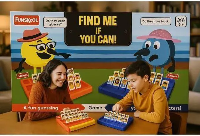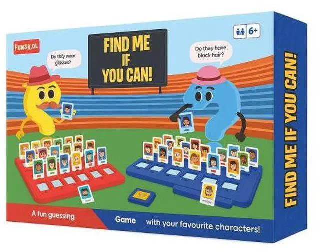 Find Me If You Can" is an exciting detective guessing game perfect for family game nights. Ideal for kids aged 6 and up, players use critical thinking and strategy to ask yes/no questions and eliminate possibilities to guess the mystery character on their opponent's card. The game includes 2 colorful gameboards (red and blue), 40 white plastic frames, and 3 character card sets (20 cards per set). Easy to learn, fun to play, and great for developing memory and decision-making skills.