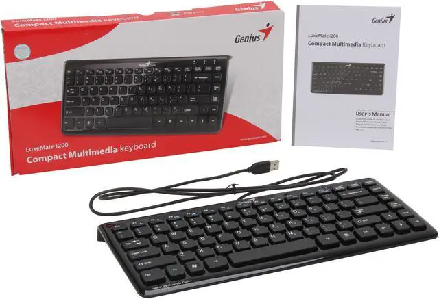 A great example for its class, the Genius LuxeMate i200 perfectly blends function and design at a friendly price. Its compact, slim silhouette naturally complements your desktop or laptop, while chiclet keyboard design with square keycaps feels soft to the touch and is great for typing. Up to 12 function keys gives you one-key control of media and Internet features - no need to switch between programs and then mouse-click the control buttons or locate the icon to launch the appliciation.