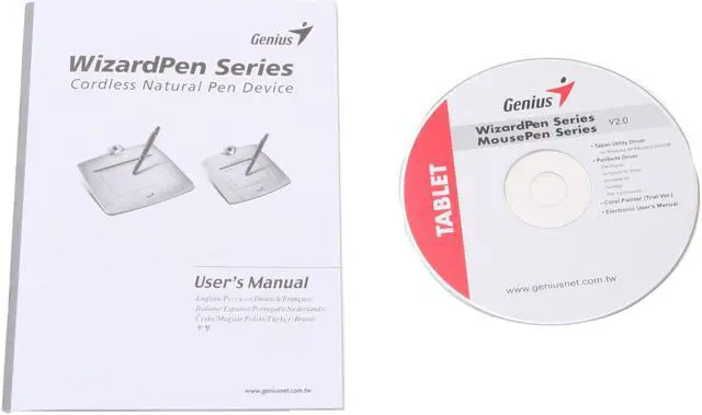 | Package Contents | WizardPen 5x4 tablet with USB connector Cordless pressure sensitive pen Quick installation quide CD driver |