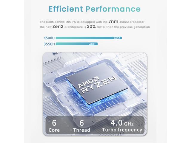 GenMachine Mini PC AMD Ryzen 5 4500U,16GB RAM 512GB M.2 NVMe SSD,AMD Radeon Graphics,2 x 4K Output, 2 x HDMI Ports,2 x USB 3.0,1 x Type-C,Wifi6,Bluetooth5.2,Windows 10 Pro Desktop Computer