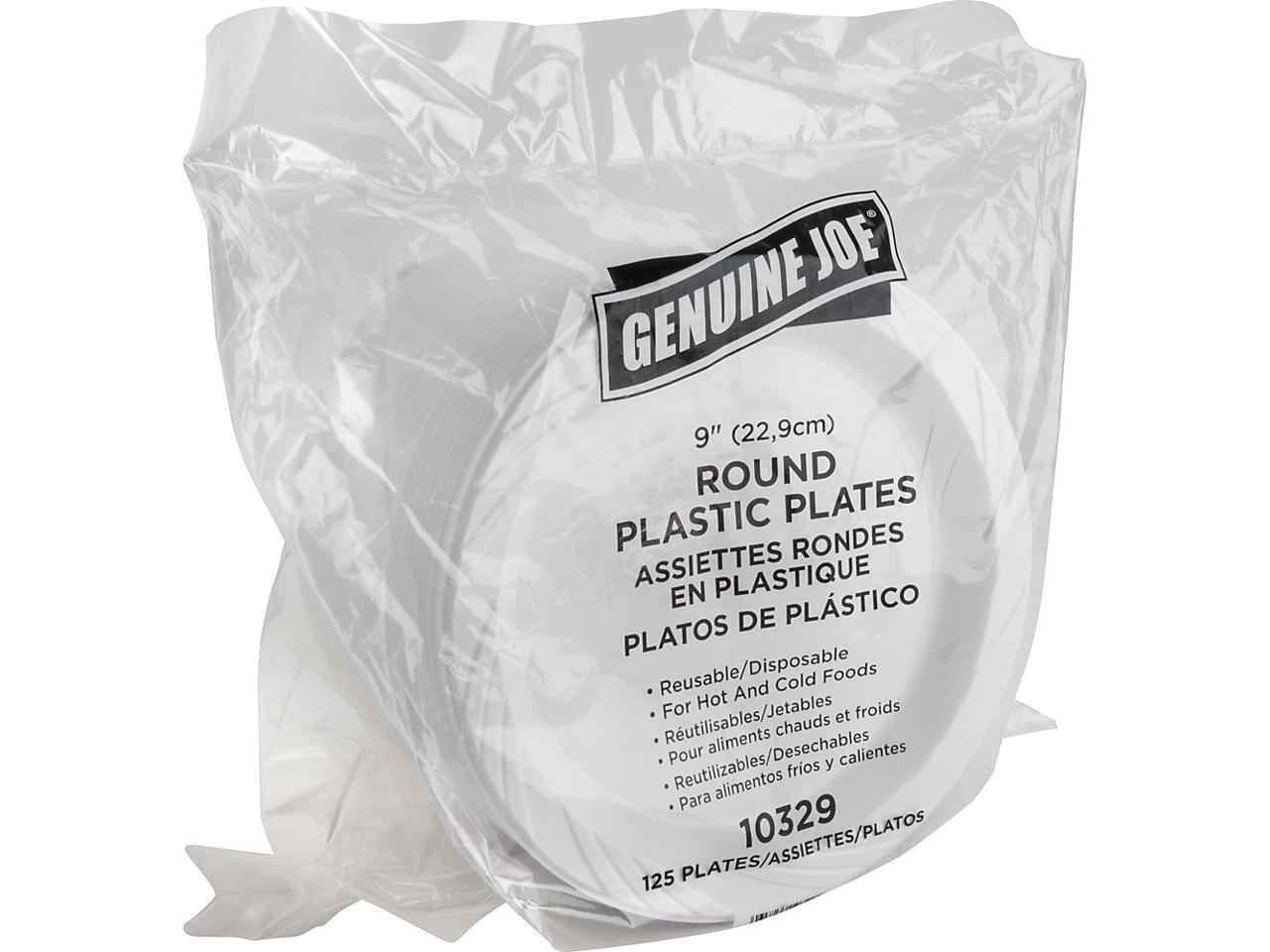 9" Plastic Round Plates Reusable/Disposable 125/PK White