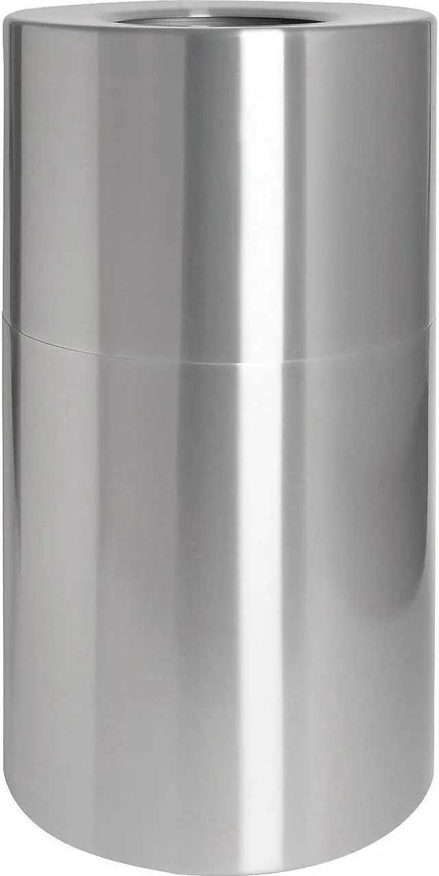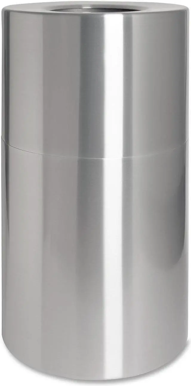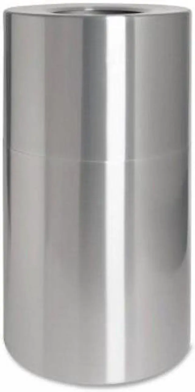 Weather-resistant waste receptacle is ideal for high-traffic areas. The open-mouth design allows easy trash disposal. Classic cylinder shape blends easily into your location's decor. Heavy-gauge, seamless aluminum construction is fireproof and leakproof. Two-piece design permits removal of the top section to insert a poly bag and remove trash from a leakproof, rigid plastic liner. Waste receptacle offers a 35 gallon capacity.