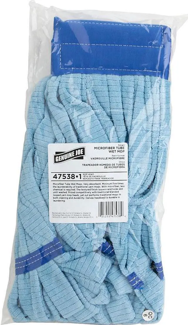 Microfiber wet mophead refill is designed for use with the versatile, Genuine Joe Complete Wet Mop with 60" gripper handle (sold separately). Pick the mophead refill to fit the size job. Mophead is very absorbent and delivers a minimum five times the launderability of traditional yarn mops. With microfiber, less chemical is required. The textured finish loosens and holds dirt until washed. The mophead is priced competitively with traditional blended, looped yarn mopheads yet outperforms traditional mops in both cleaning and durability. Canvas headband is durable in laundering.