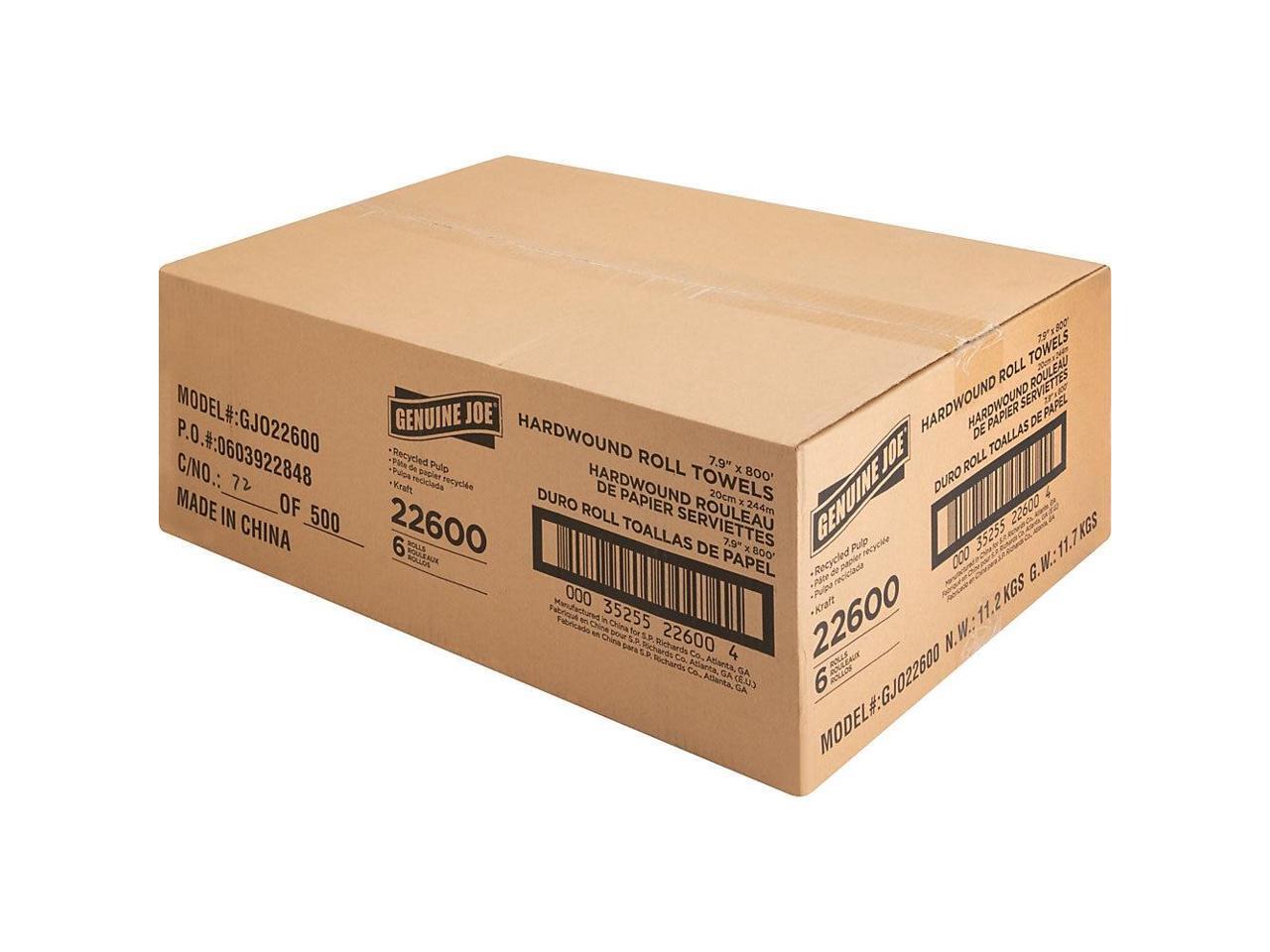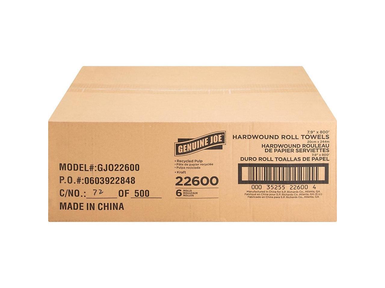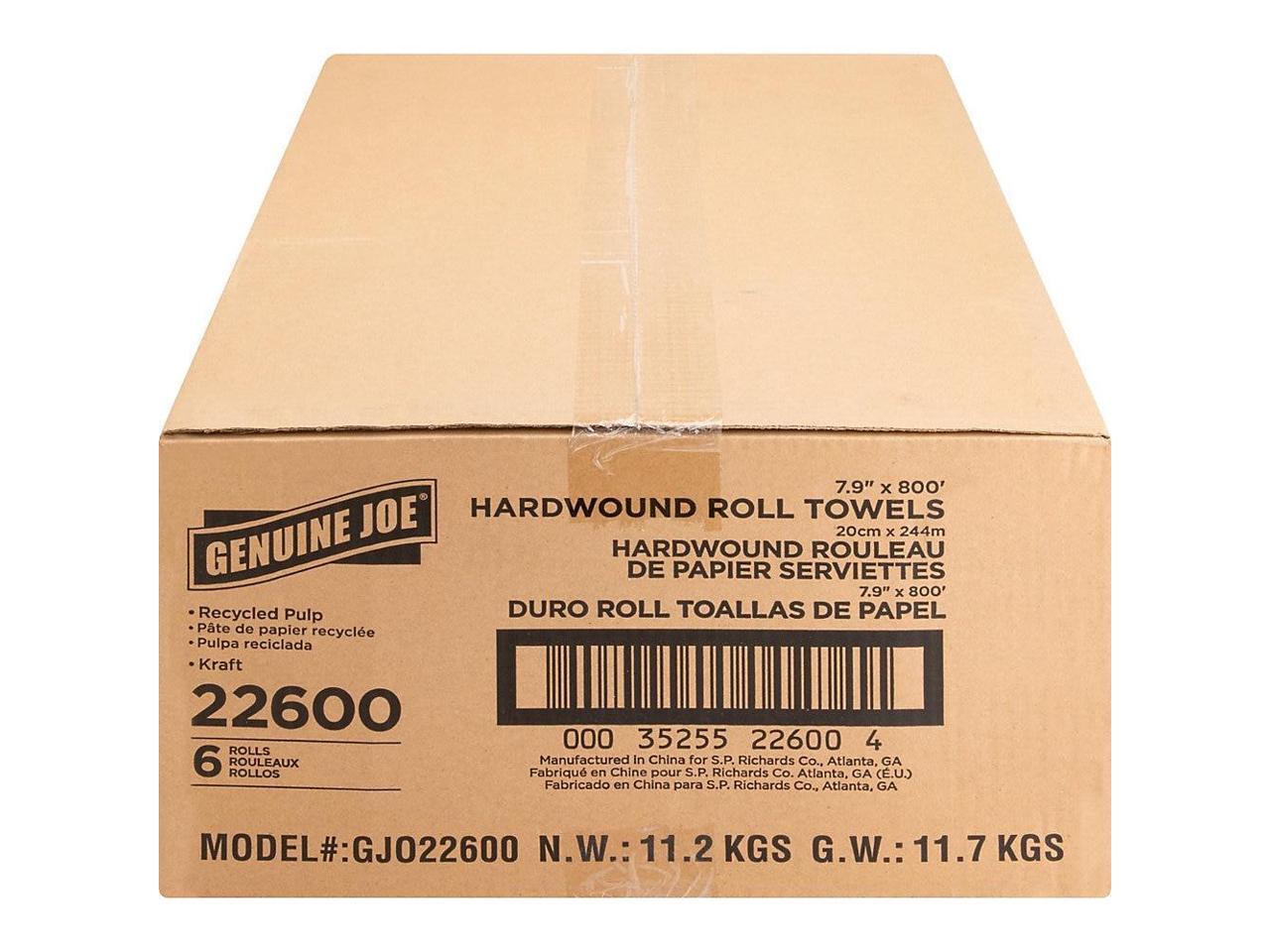 Genuine Joe Hardwound Roll Towels 2"Core 7-7/8"x800' 6 Rolls/CT NATRL 22600