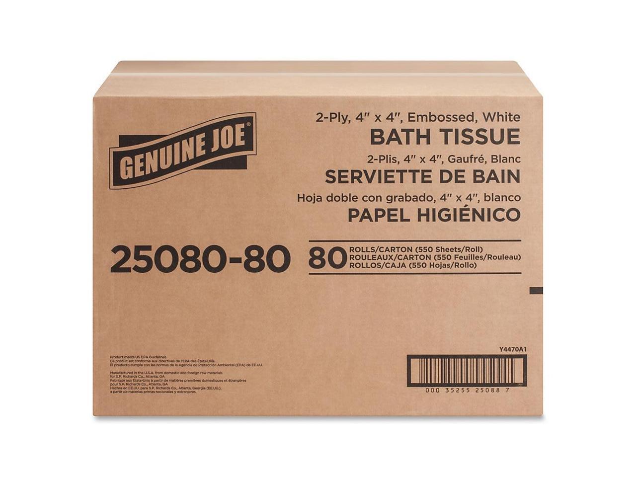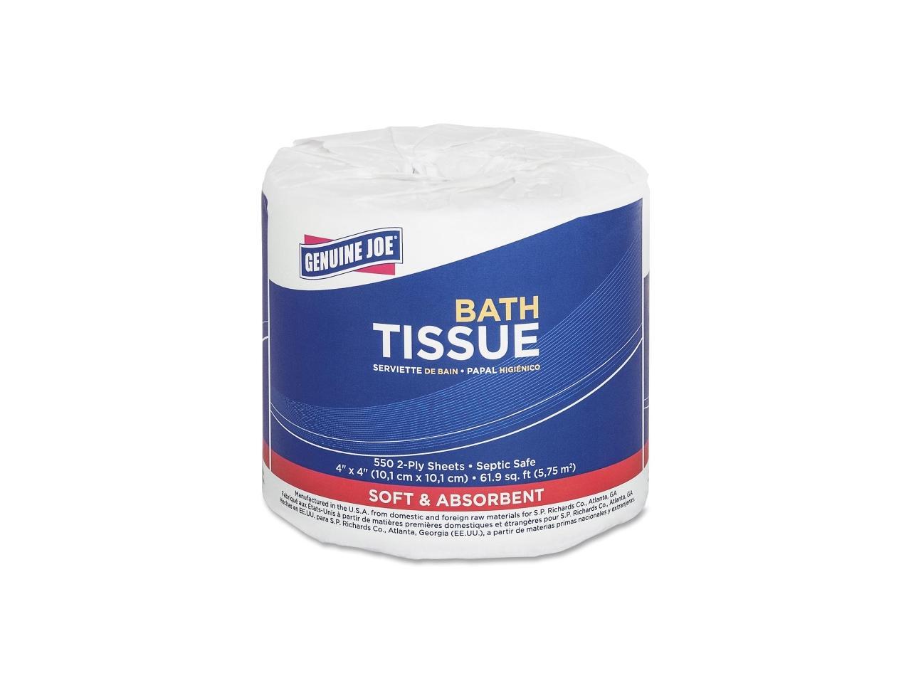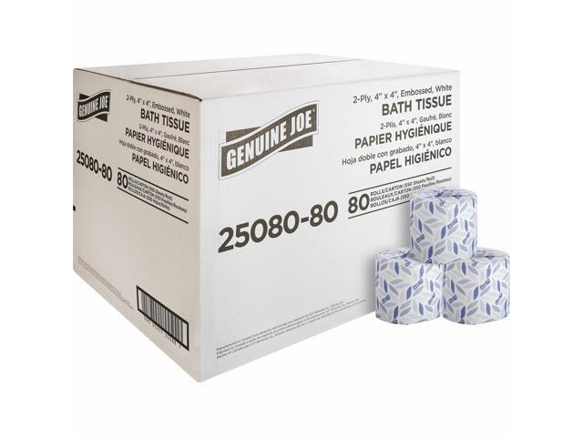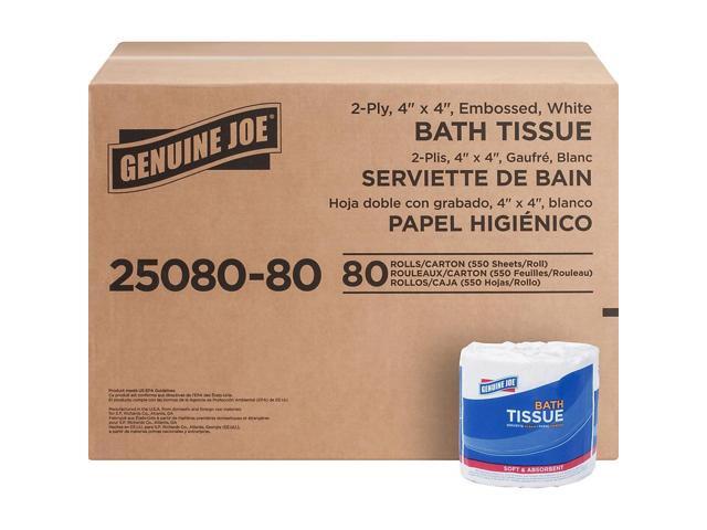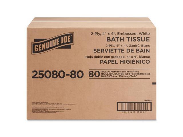 Genuine Joe Bath Tissue Rolls 2-Ply 550 Sht 4"x3.15" 80/CT WE 2508080