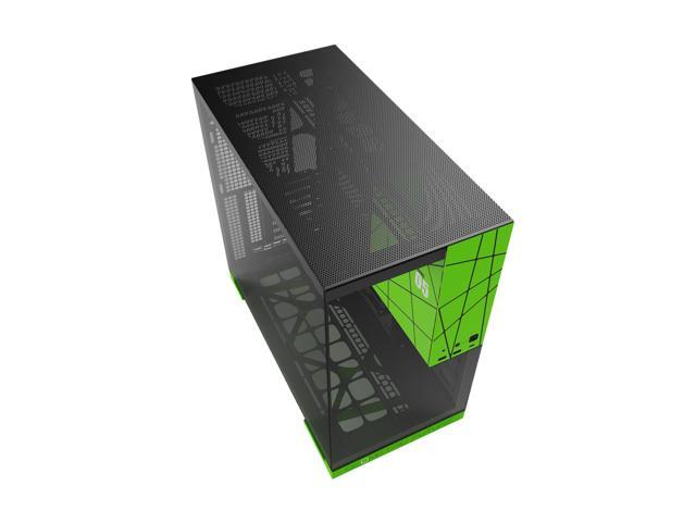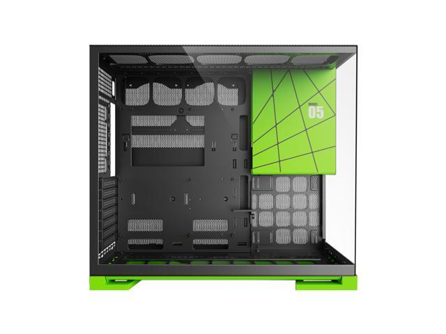 Geometric Future M5 Tempered Glass Mid Tower, E-ATX/ATX Gaming Case, 1.2mm Steel, Type C, Toolless Panels, Support 420/360 Radiator, Dual-Chamber, Black/Green, GEO-M5-BNY