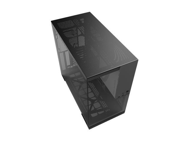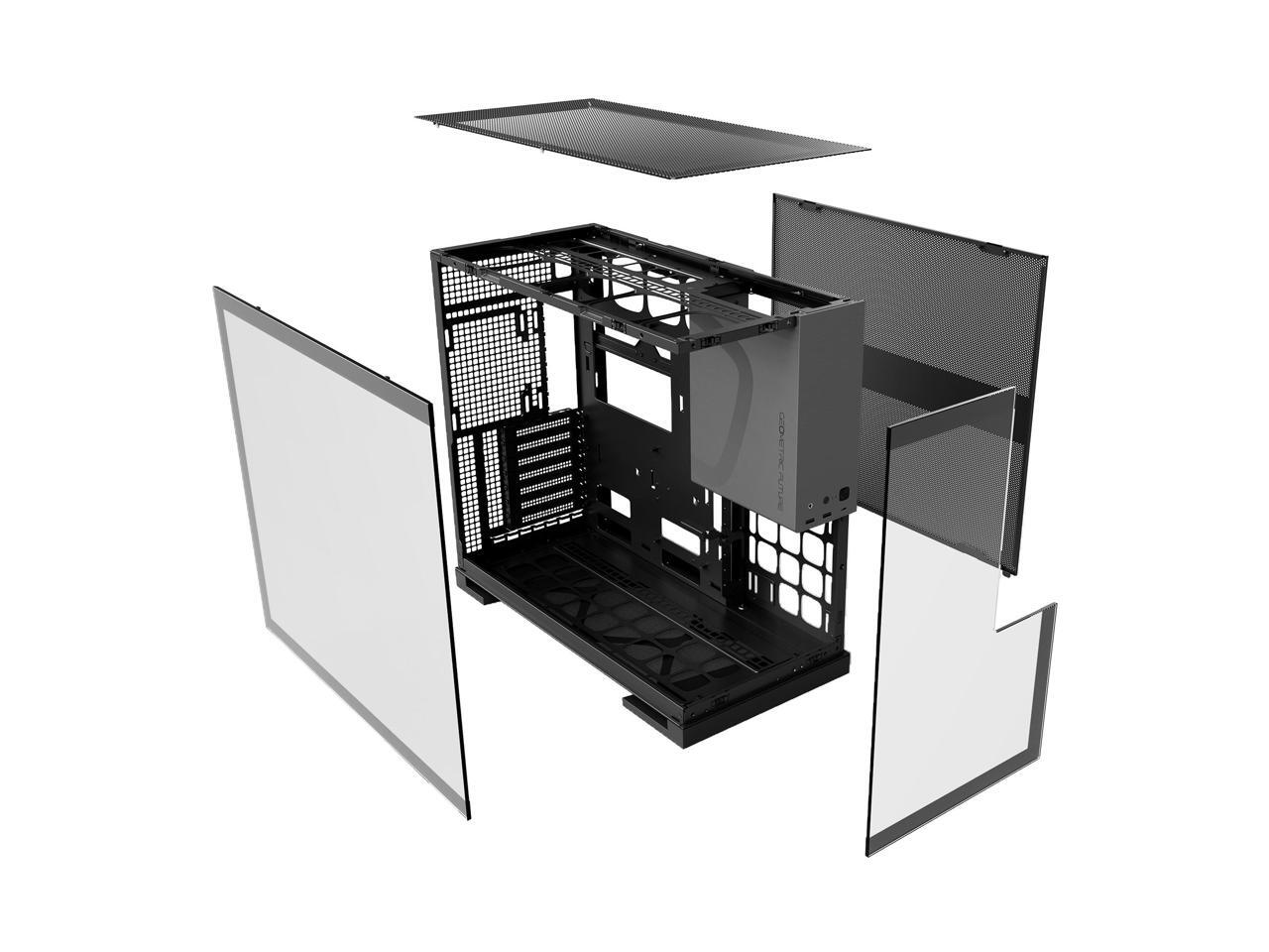 Geometric Future M5 Tempered Glass Mid Tower, E-ATX/ATX Gaming Case, 1.2mm Steel, Type C, Toolless Panels, Support 420/360 Radiator, Dual-Chamber, Black/Grey, GEO-M5-BG
