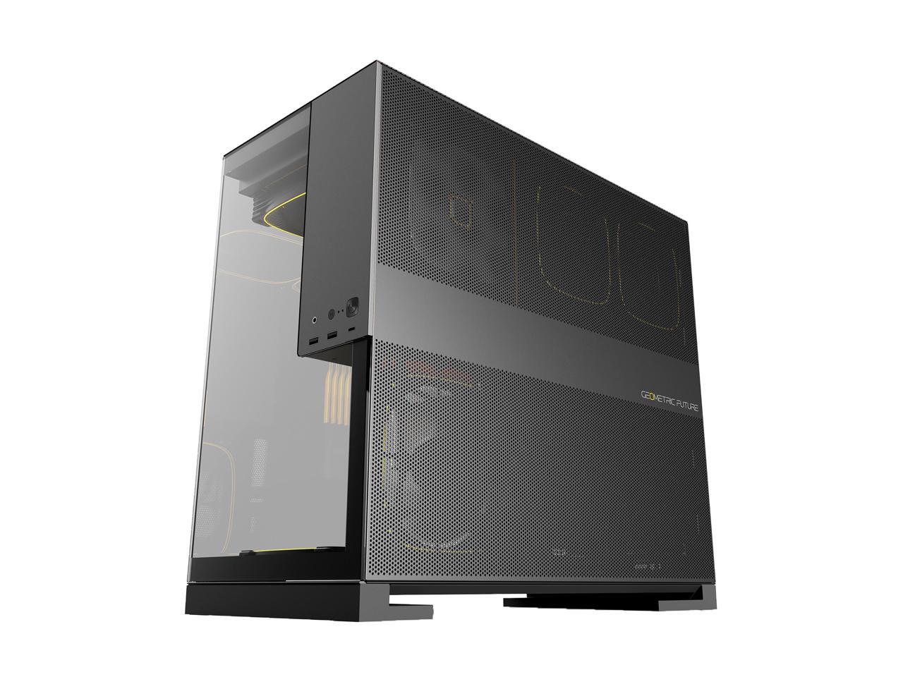 Geometric Future M5 Tempered Glass Mid Tower, E-ATX/ATX Gaming Case, 1.2mm Steel, Type C, Toolless Panels, Support 420/360 Radiator, ARGB PWM 140m fan x 5 Pre-Installed, Black/Grey, GEO-M5F-BG
