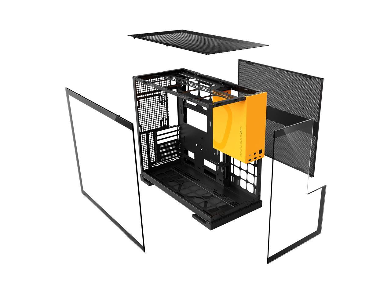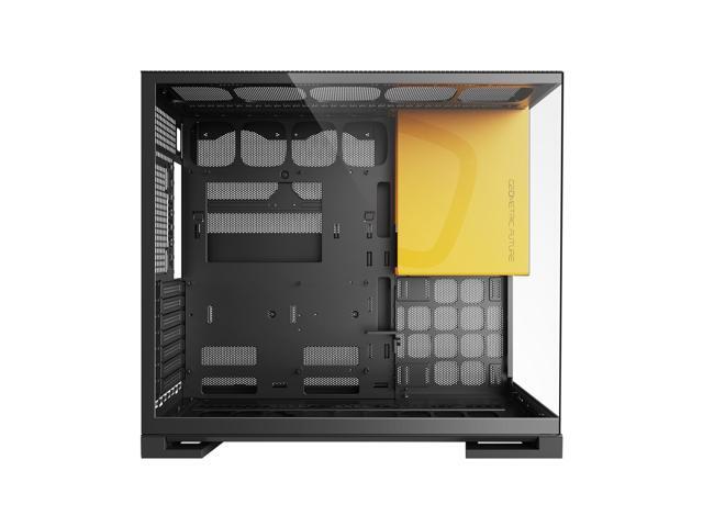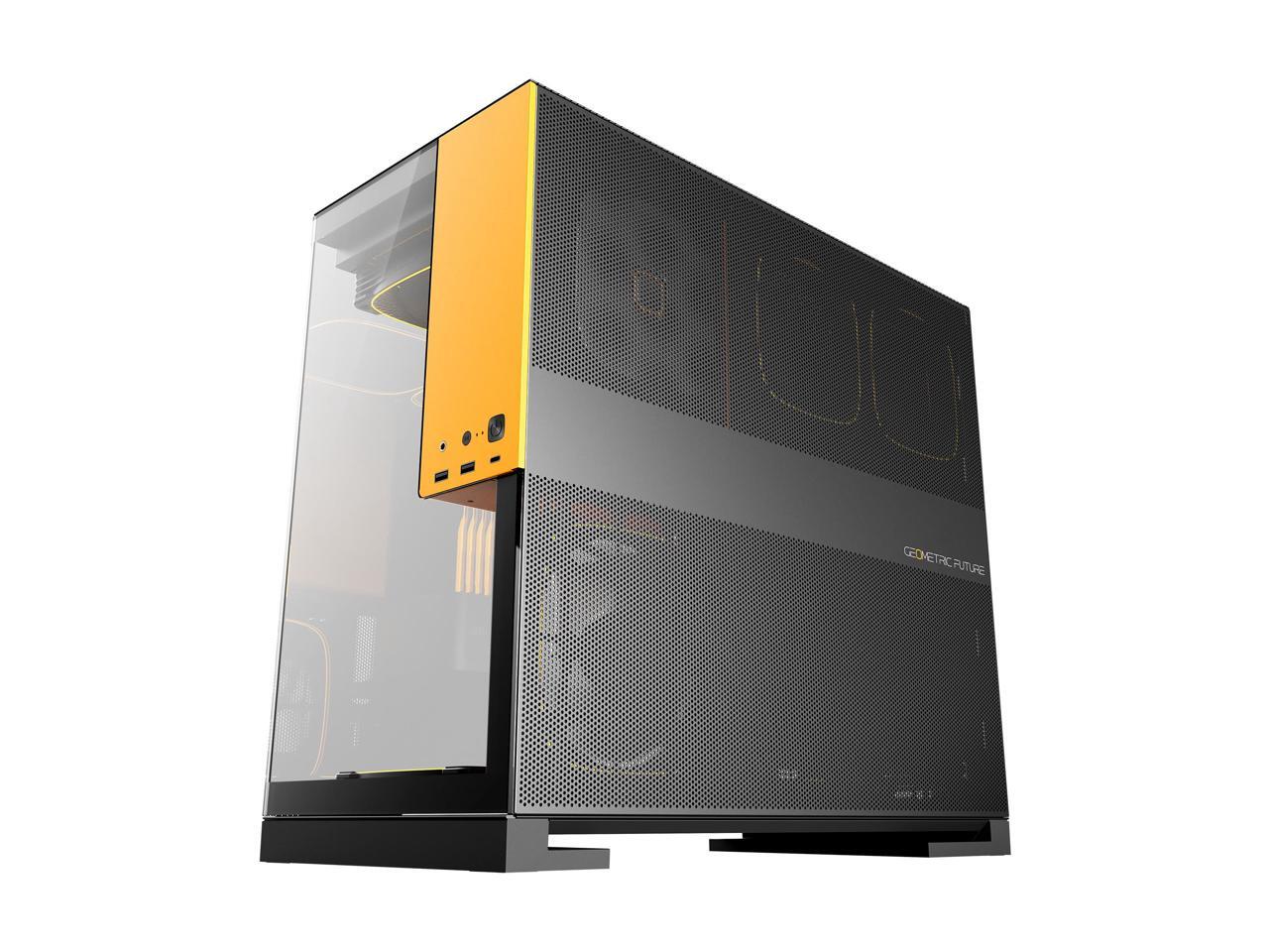 Geometric Future M5 Tempered Glass Mid Tower, E-ATX/ATX Gaming Case, 1.2mm Steel, Type C, Toolless Panels, Support 420/360 Radiator, Dual-Chamber, Black/Yellow, GEO-M5-BY