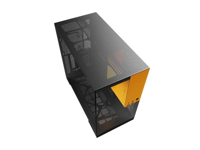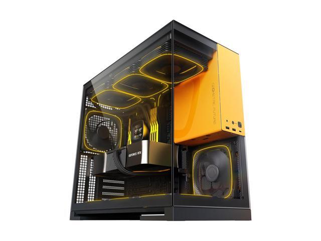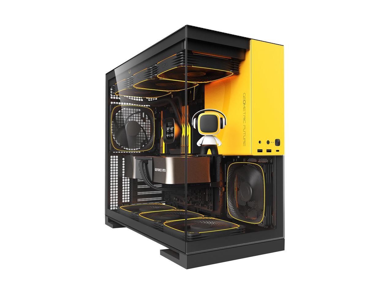 Geometric Future M5 Tempered Glass Mid Tower, E-ATX/ATX Gaming Case, 1.2mm Steel, Type C, Toolless Panels, Support 420/360 Radiator, ARGB PWM 140m fan x 5 Pre-Installed, Black/Yellow, GEO-M5F-BY
