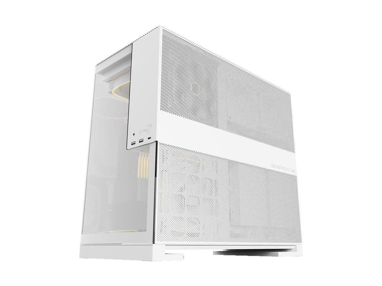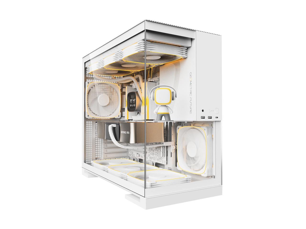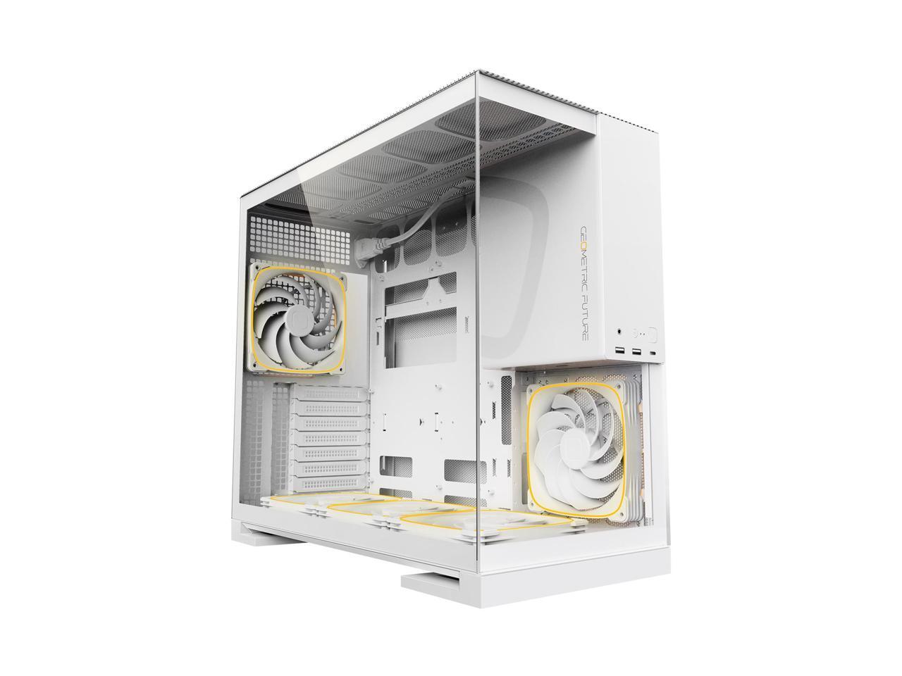 Geometric Future M5 Tempered Glass Mid Tower, E-ATX/ATX Gaming Case, 1.2mm Steel, Type C, Toolless Panels, Support 420/360 Radiator, ARGB PWM 140m fan x 5 Pre-Installed, White, GEO-M5F-W