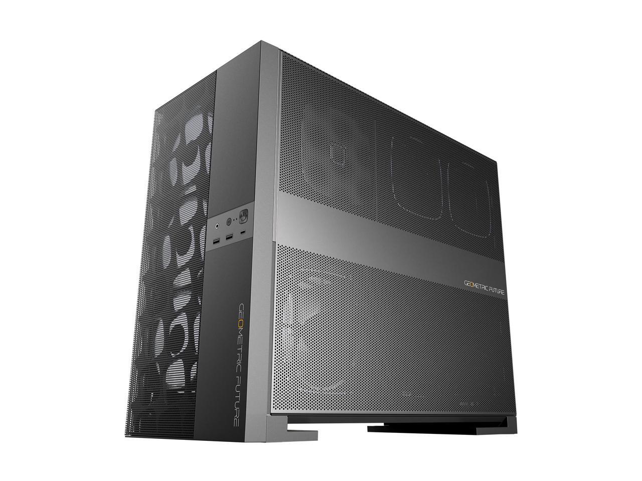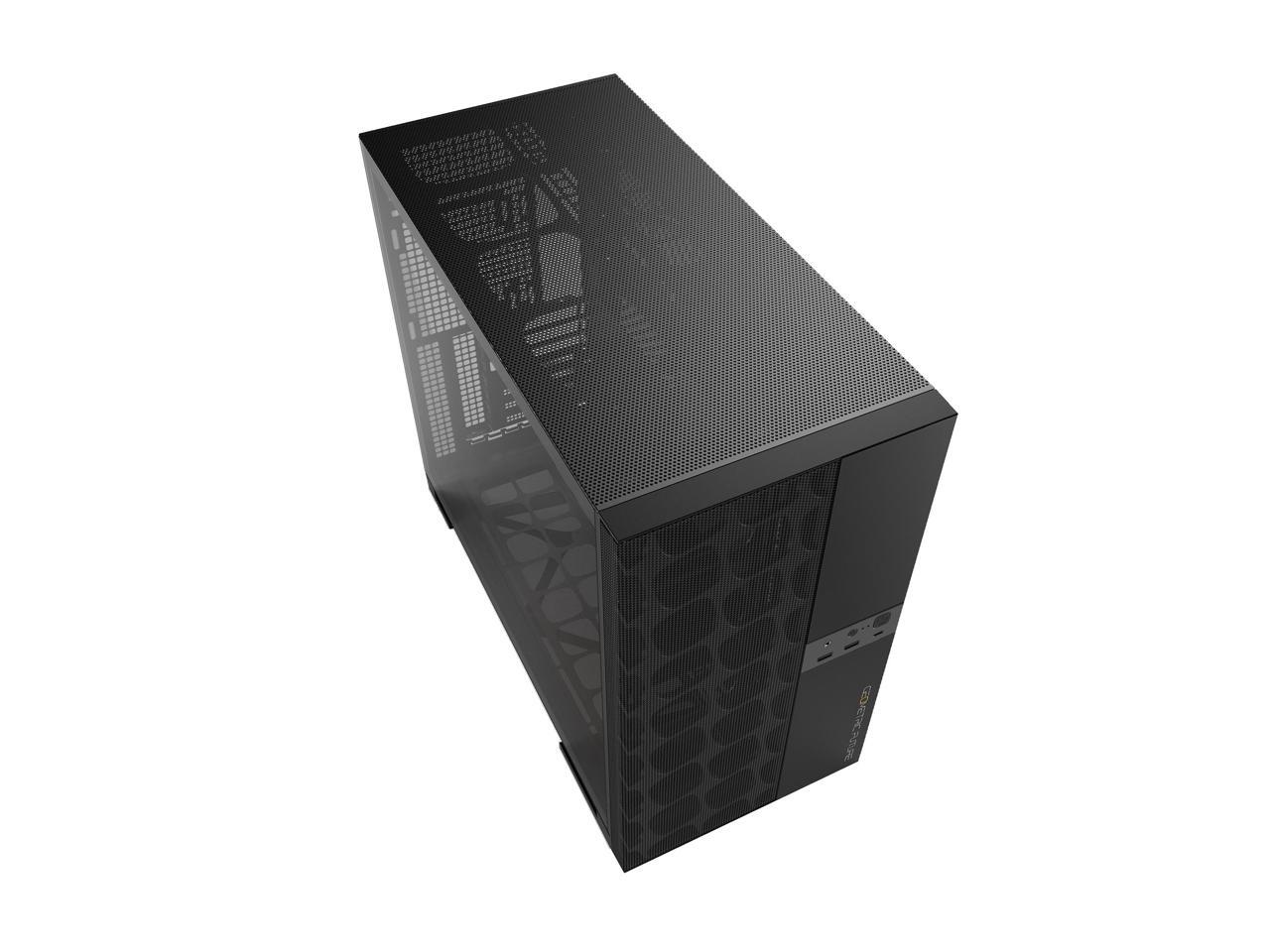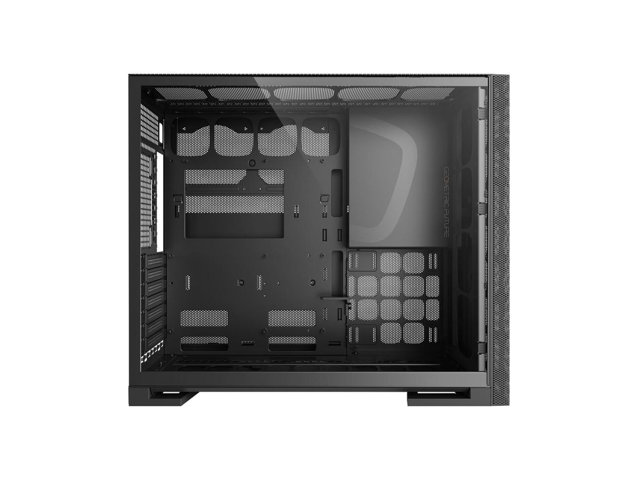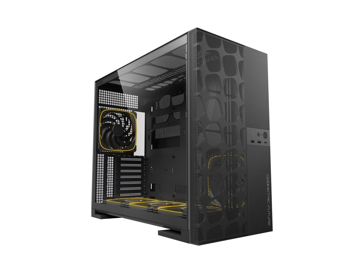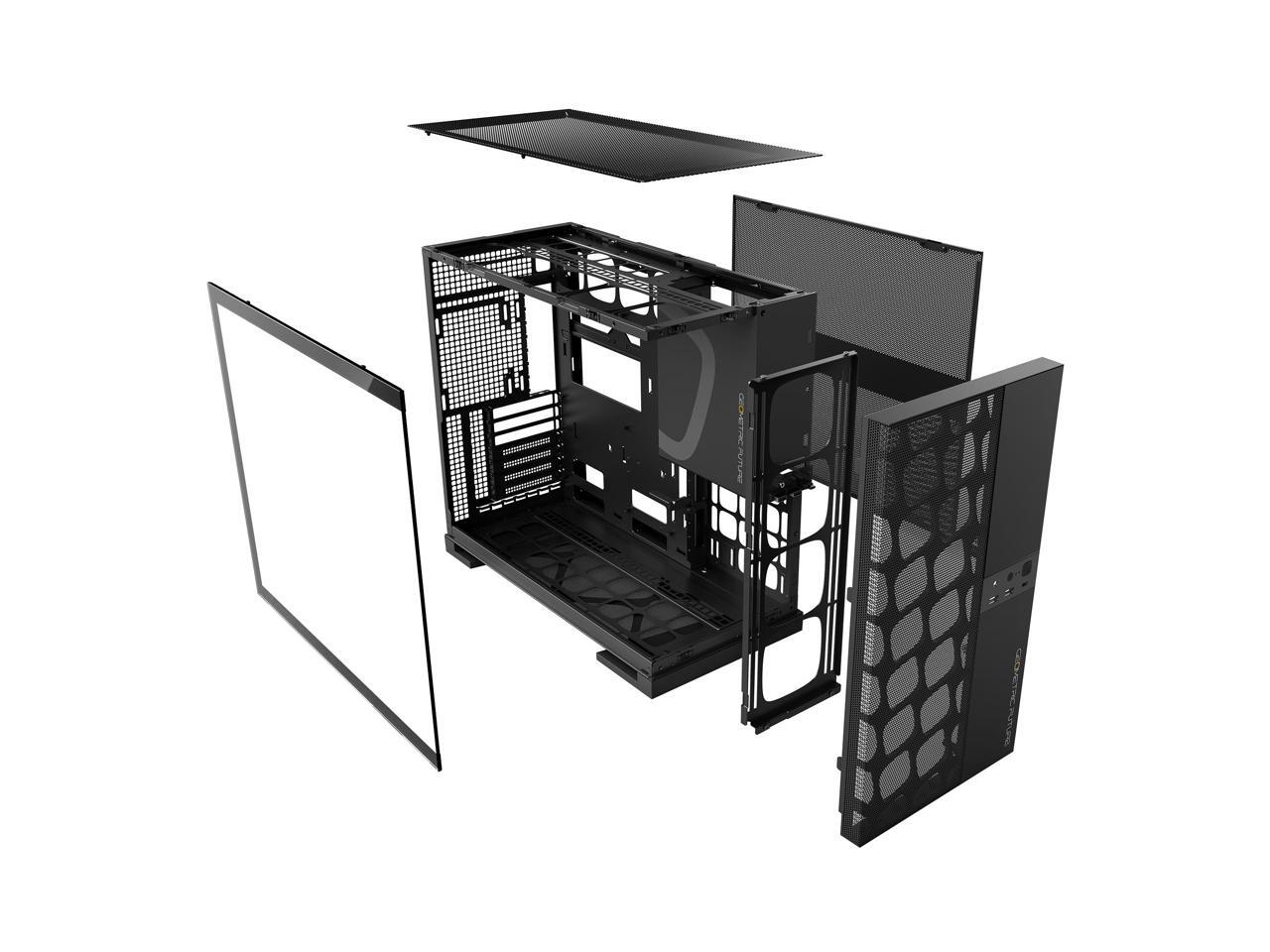 Geometric Future M5 Vent Mesh Panel Tempered Glass Mid Tower, E-ATX/ATX Gaming Case, High Airflow, 1.2mm Steel, Type C, Support 420/360 Radiator, ARGB PWM 140m fan x 5 Pre-Installed, Black, GEO-M5VF-B