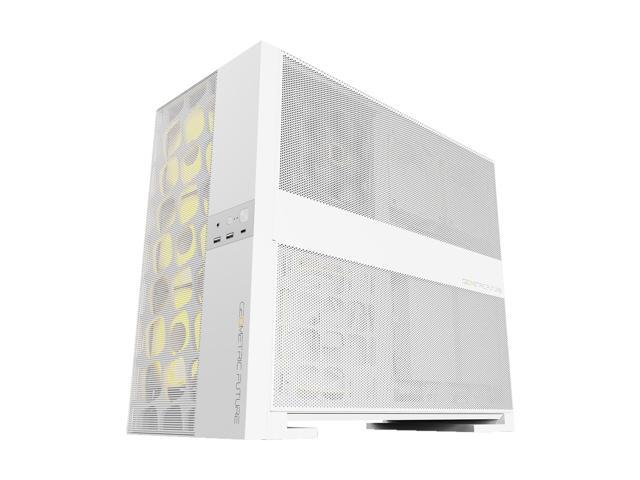 Geometric Future M5 Vent Mesh front Panel Tempered Glass Mid Tower, E-ATX/ATX Gaming Case, High Airflow, 1.2mm Steel, Type C, Toolless Panels, Support 420/360 Radiator, Dual-Chamber, White, GEO-M5V-W