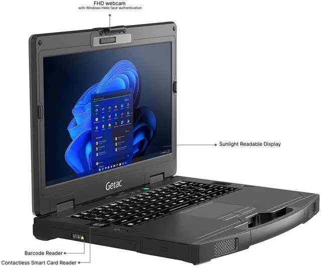 Getac S410G4 Semi-Rugged Laptop 14 Inch FHD Sunlight Readable Touchscreen, Intel Core i5-1145G7, 16GB RAM, 1TB SSD, Webcam, Windows 11 Pro, LED Backlit Keyboard, Smart Card Reader