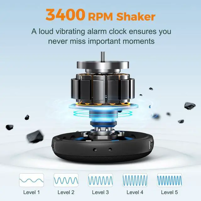 Its 6:30 a.m. Your teen has already slept through three alarms, and your partners shift starts in 15 minutesbut the room is still silent. Sound familiar? Whether youre a heavy sleeper, have some hearing loss, or just want a better way to wake up without waking others, the Gianna alarm clock is here to make mornings easier. Wake up on your terms with a powerful 110dB loud alarm clock, designed to get even the most stubborn sleepers out of bed. Choose from 5 different tones and hit the 9-minute snooze when you need a bit more rest. Ideal for alarm clocks for bedrooms heavy sleepers. The built-in 5-level vibrating bed shaker slides easily under your pillow to deliver strong, silent wake-upsperfect for shared rooms, college dorms, or hearing-impaired users. It's your personal shake-up call. Forget tangled cords. This wireless alarm clock can sit anywhereon a nightstand, under a pillow, even across the room. No wall outlet? No problem. The smart display includes an ambient light sensor that automatically adjusts brightness based on your environment. No more harsh glares or straining to see the time. Great for nightstands or kids bedrooms. Take it anywhere. With a 1500mAh rechargeable battery, Giannas travel alarm clock battery operated runs up to 29 hours without needing to plug in. Just charge and go. Charging is easy with a magnetic baseno cords to fuss with, no outlets needed next to your bed. Just snap it into place and recharge when needed. Whether it's for a teen, senior, or someone hard of hearing, this deaf alarm clock offers 3 wake-up modessound, vibration, or both. Simple buttons make setup quick and frustration-free. A perfect gift for anyone who needs a little help starting the day right.