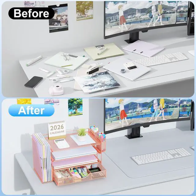 All-in-one design has enough space to hold all your office accessories, make full use of your space, keep you away from messy desktop and stay organized.