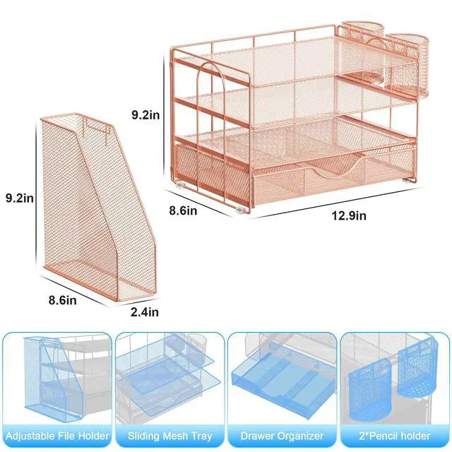 4 sliding trays + 1 Magazine Holders + 2 Hanging Pencil Holders + 1 sliding drawer, Detachable design to meet your various office needs, create more office convenience