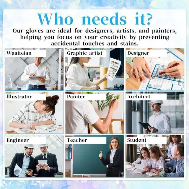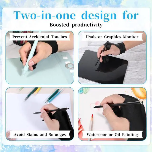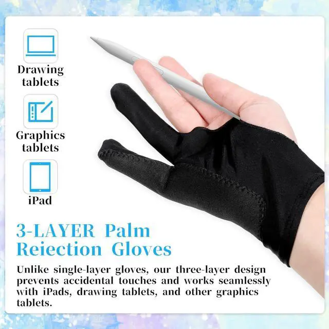 Upgraded Design: Our drawing tablet glove has a fixed design, which is more comfortable to wear. Artist glove for drawing tablet can prevent the unfixed part of the palm from staining your writing tablet, allowing you to devote yourself to the creation.