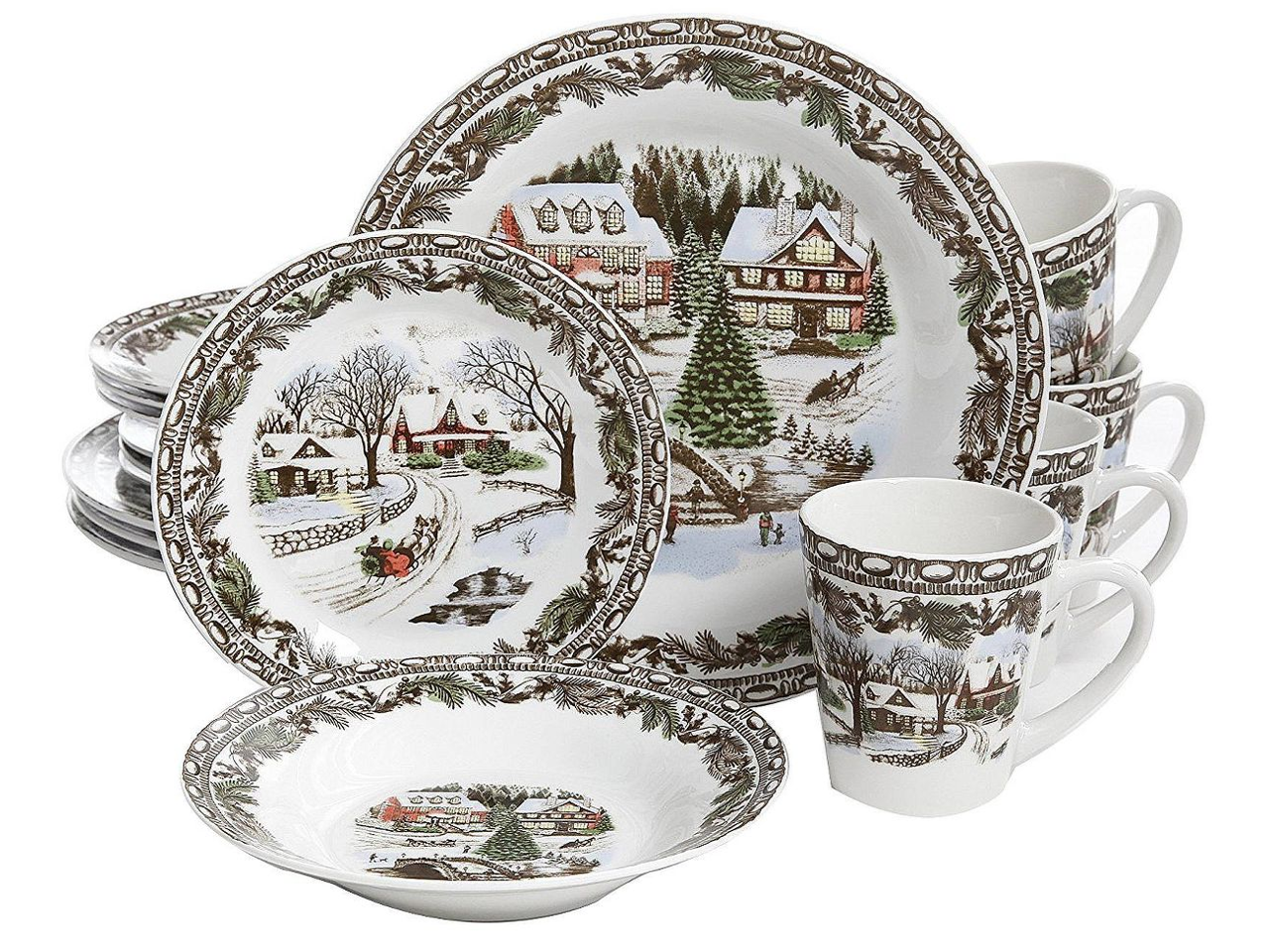 GIBSON 16-Piece Christmas Toile Dinnerware Set (105979.16)