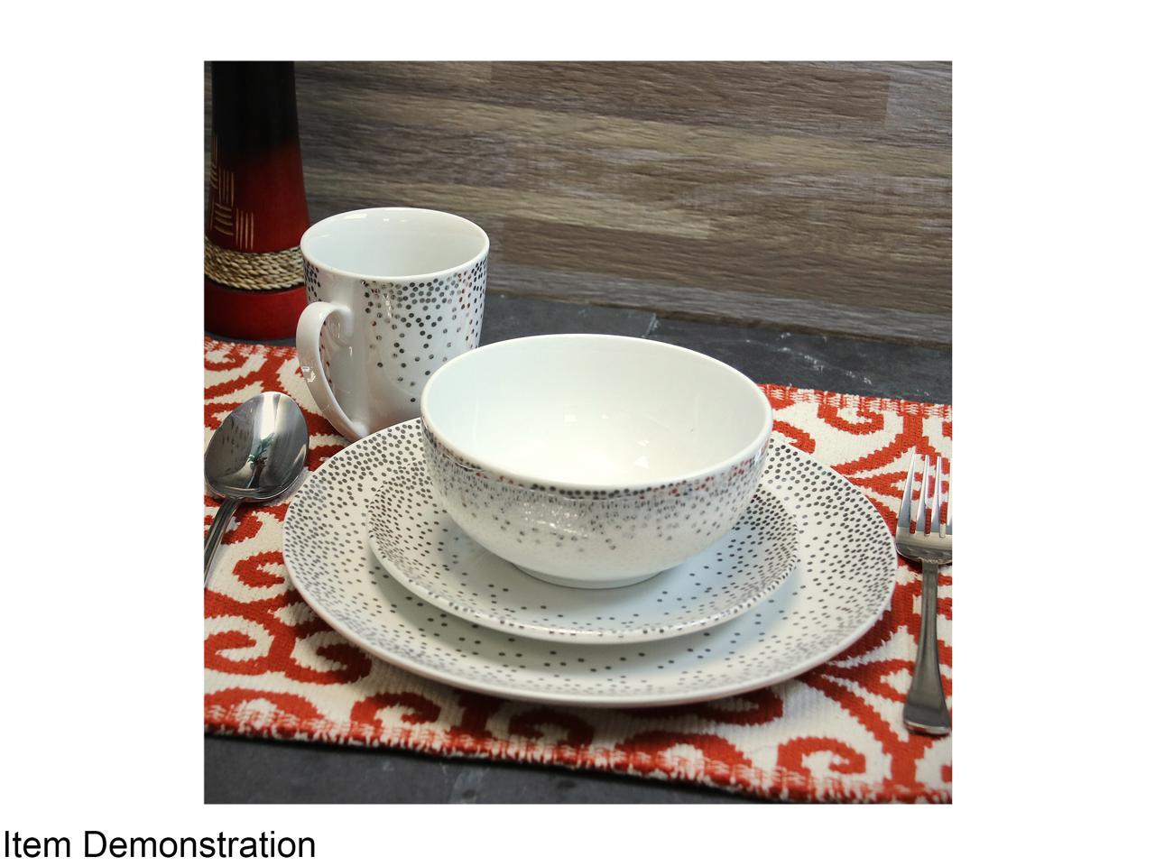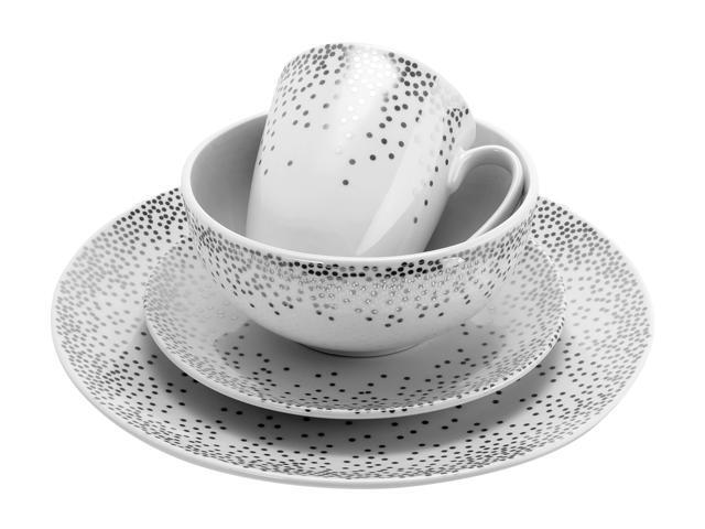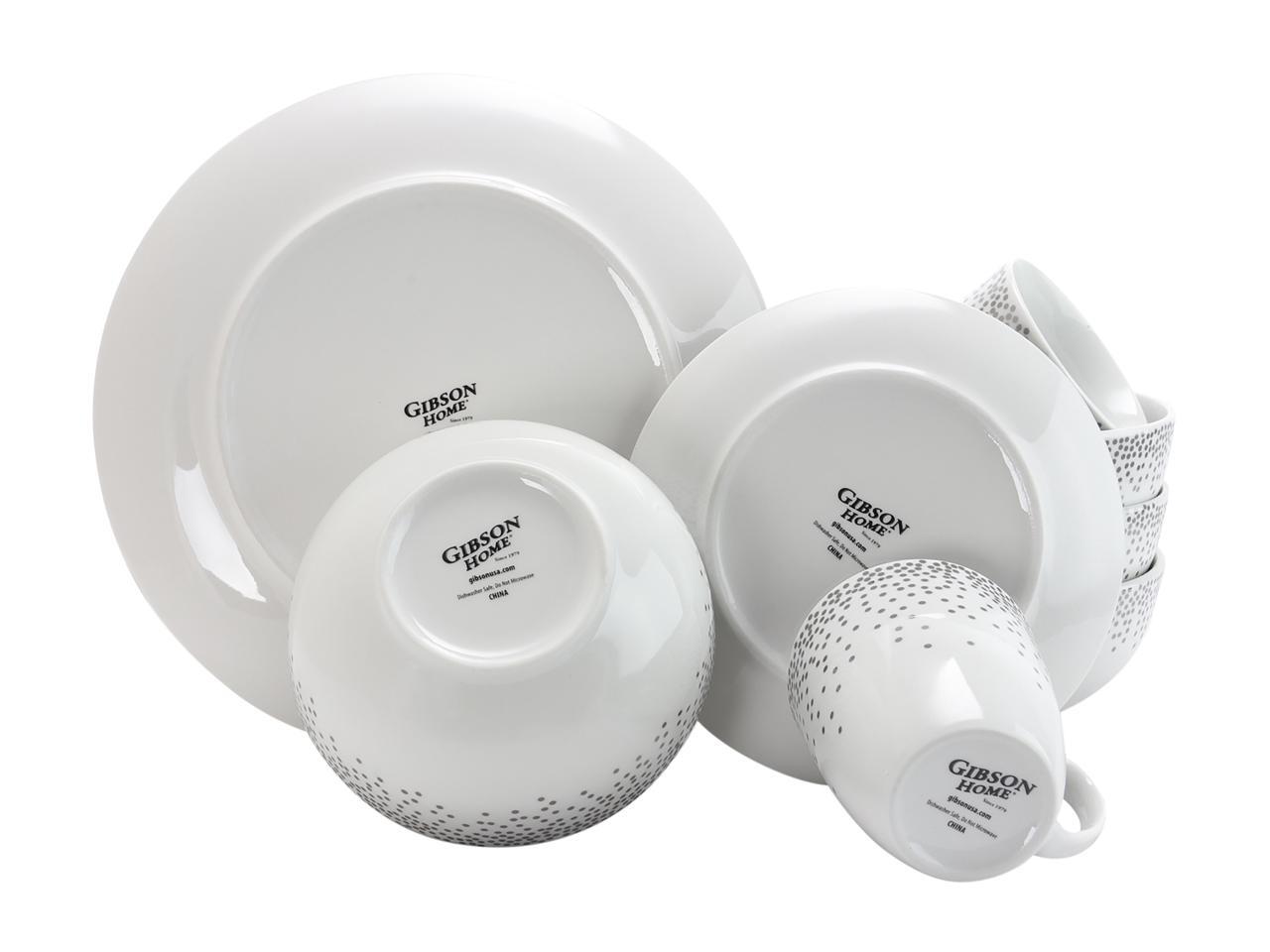 Gibson Platinum Dots 16 Piece Round Ceramic Dinnerware Set