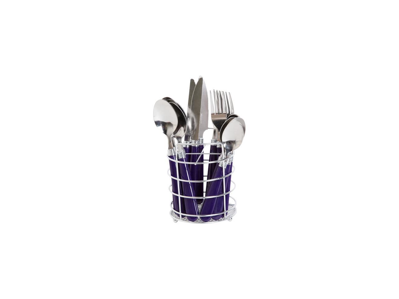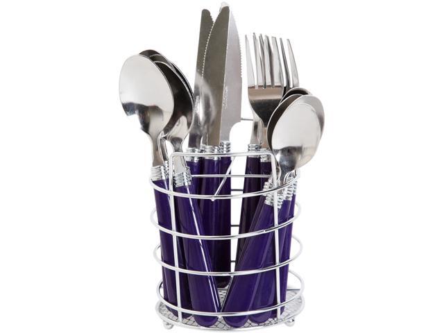Gibson Sensations II 16 Piece Flatware Set with Cobalt Plastic Handle with Wire