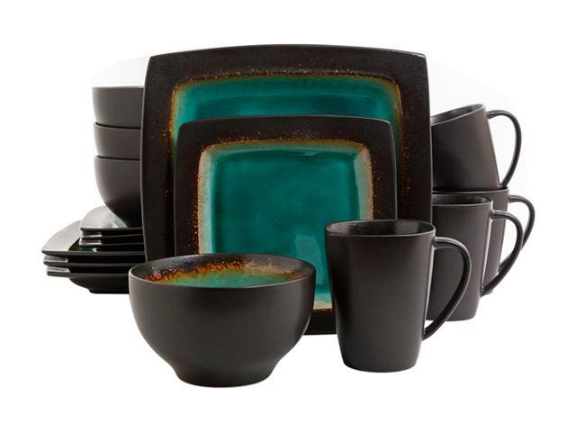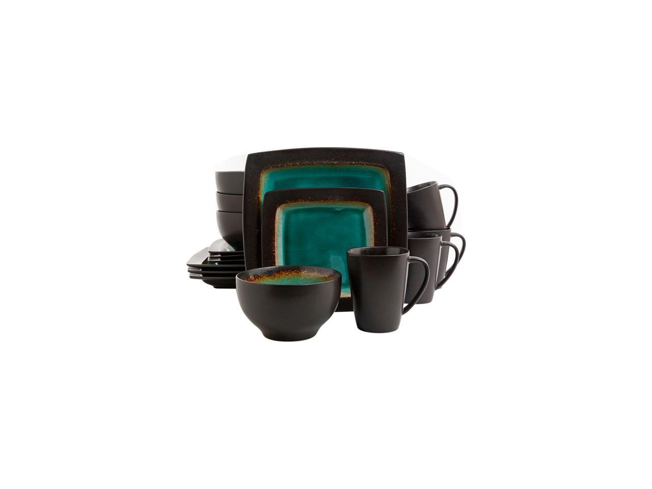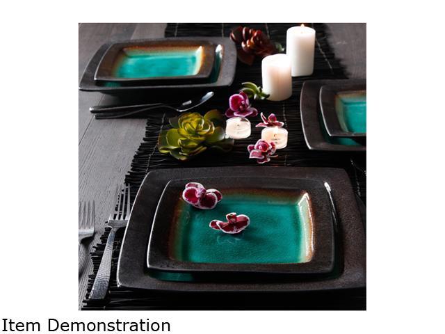 Gibson Reactive Stoneware Ocean Paradise 16 Piece Dinnerware Set, Jade
