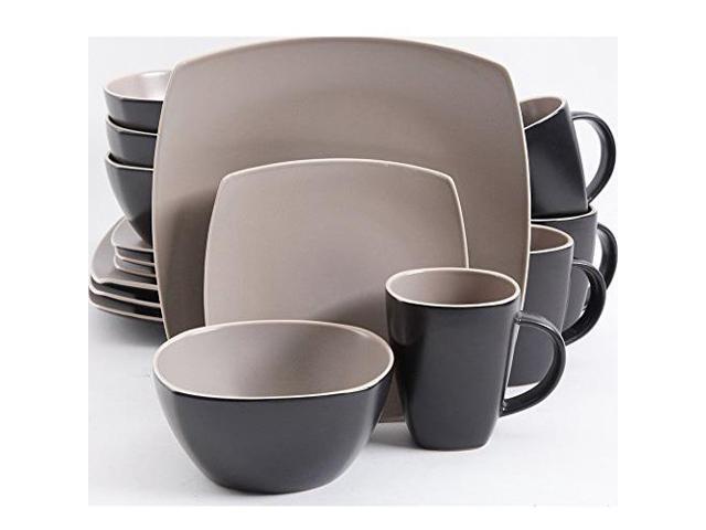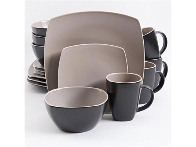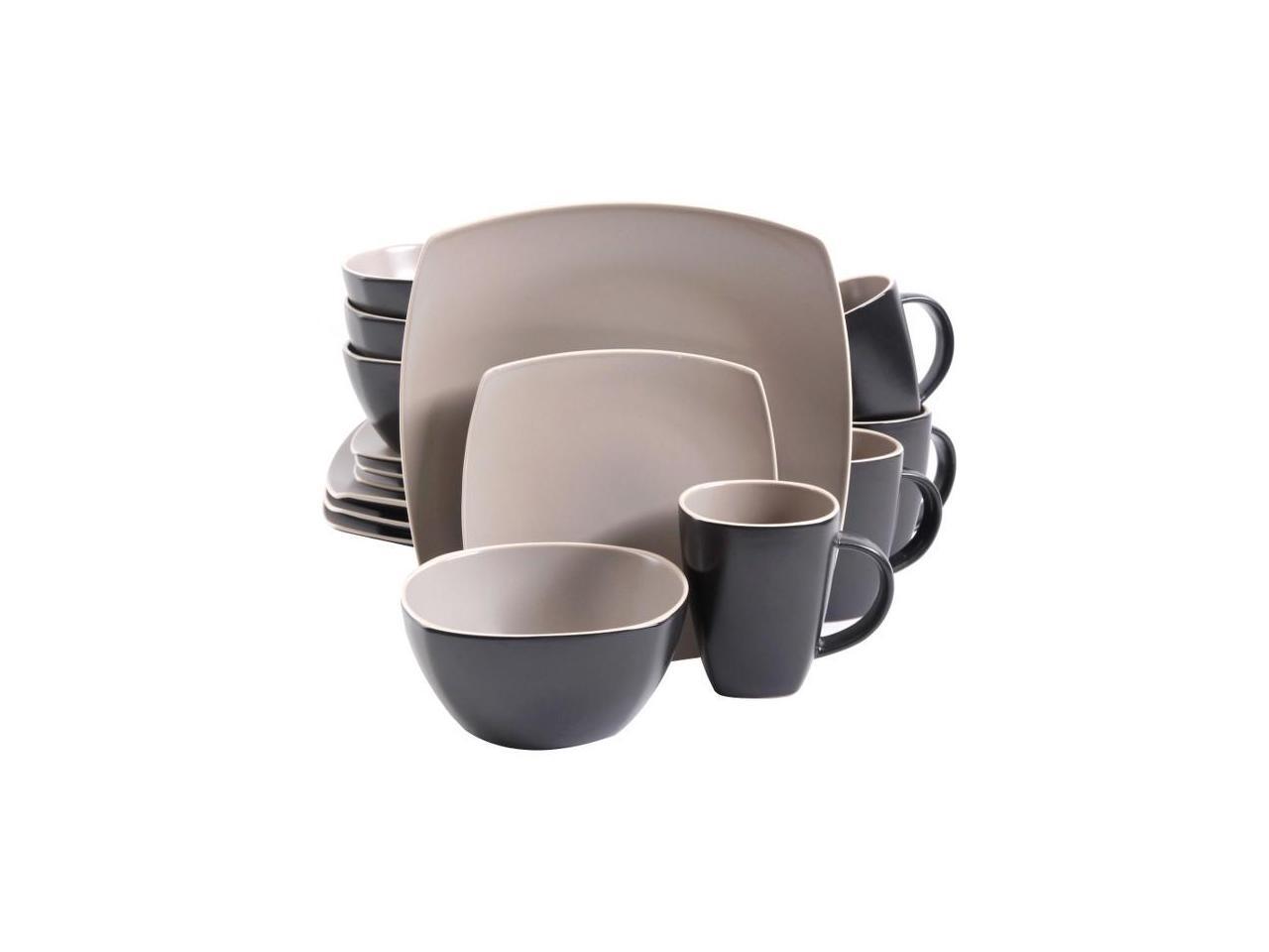 Gibson Home Soho Lounge Matte 16 Piece Dinnerware Set, Taupe/Black