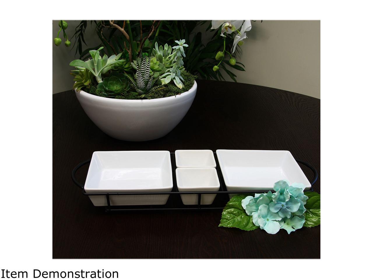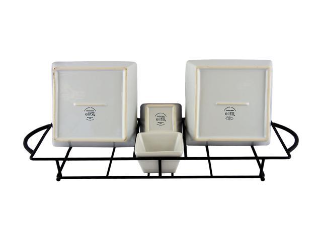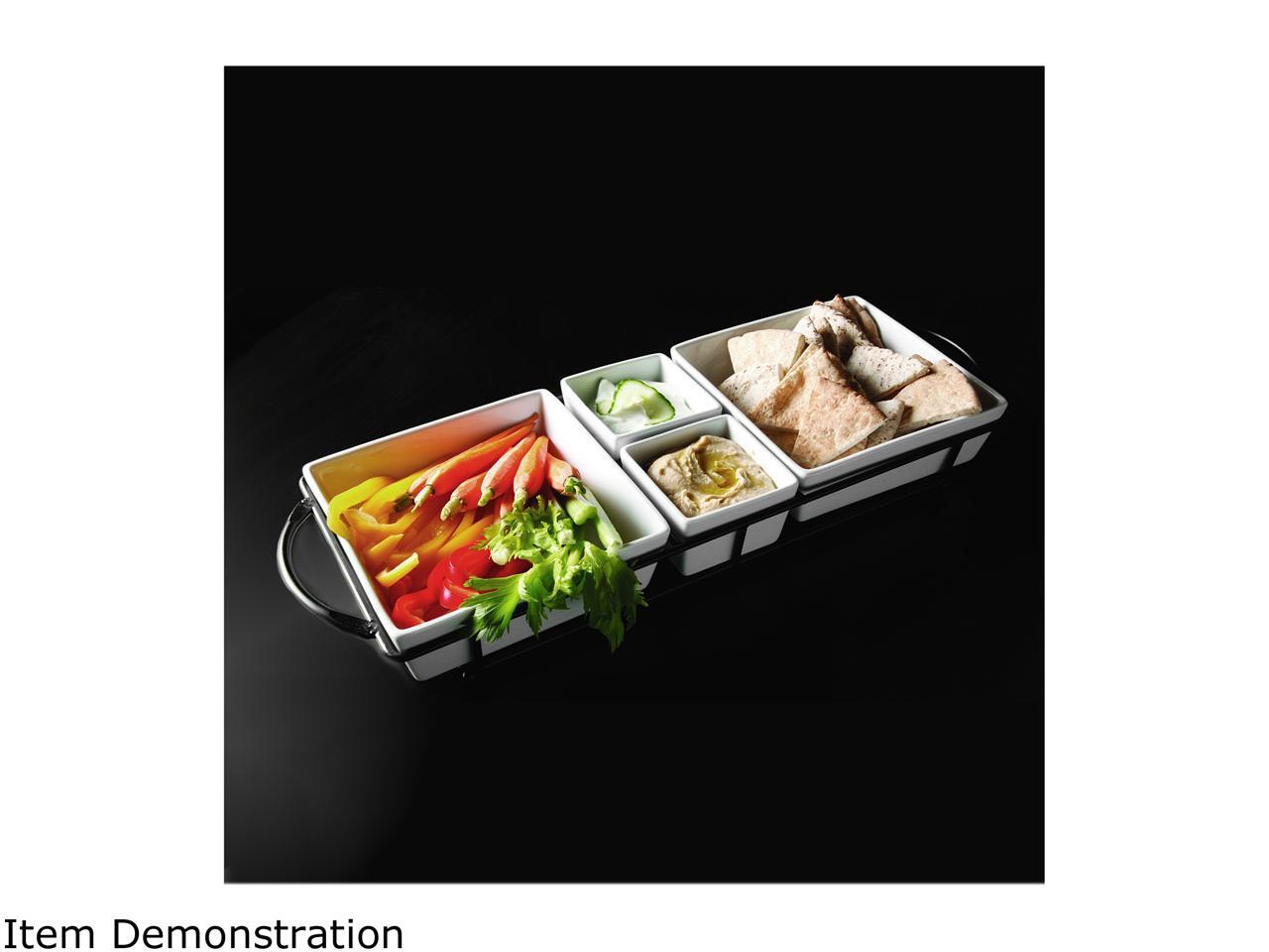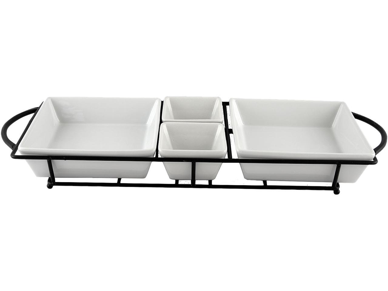 Gibson Overseas Gracious Dining Set of 4 Serving Tidbit Dishes Set w/ Metal Rack