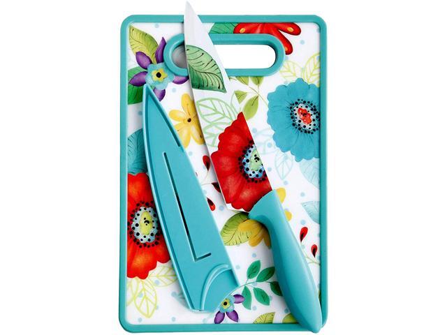 Gibson Home 112065.03 Studio California Jordana 8" Chef Knife W/Sheath & Cutting Board, Turquoise Floral Pattern