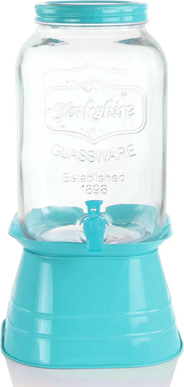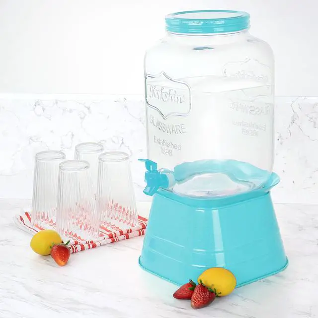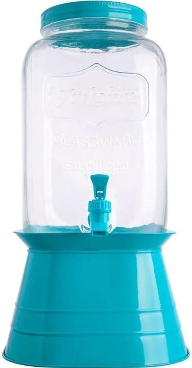 | Feature | Hosting a party? Enjoy the Gibson Home Chiara 2 Gallon Mason Jar Beverage Dispenser. A high quality yet elegant design makes this item the perfect crossover between fun and functional to make sure you can enjoy any event your hosting. The pop of color will add life to any event you're throwing. Perfect for storing your cool drinks whether it's water, iced tea, lemonade, etc. this set is not only functional but will be easy to clean afterwards. The glass is sturdy and the base is functional and durable. Enjoy this beautiful Gibson Home Beverage Dispenser today! |