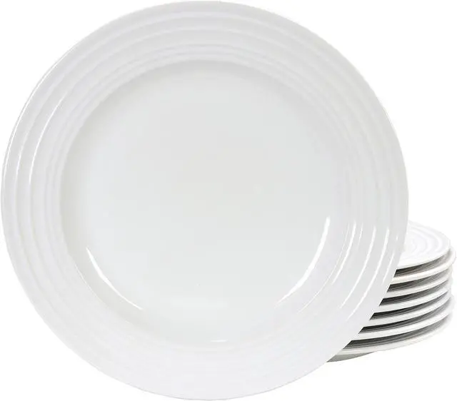 | Features | Looking for white round Dinner Plates for hosting your next meal. These 10.5 inch Plaza Cafe plates are perfect for any meal. The durable and classy stoneware comes with a raised rim pattern on the edge. To make your life easier, each piece is microwave and dishwasher safe. |