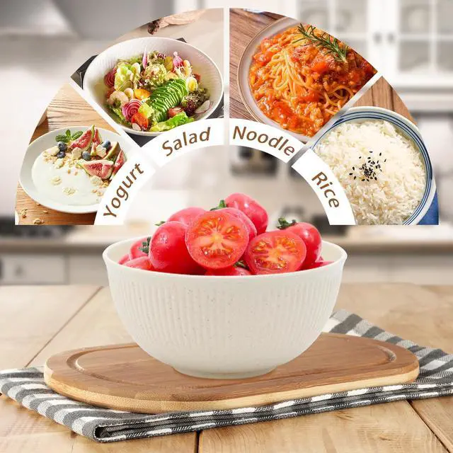 The tableware is made of natural wheat straw fibers and food-grade PP materials, thus it is a more sustainable alternative. It is practical and fashionable, and can be reused. This set of kitchen plates and bowls is a very healthy tableware set for your family.